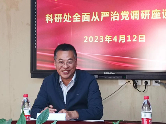 李龙从科研处基本情况,全面从严治党、党风廉政建设工作开展、意识形态工作责任制落实等方面汇报了工作。同时表示,调研座谈会对指导科研处工作具有重要意义,科研处将认真研究落实座谈会各项要求。