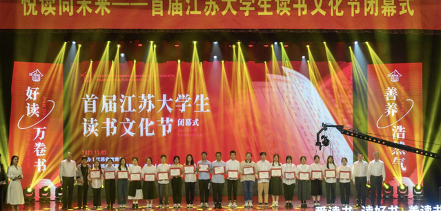 参加首届江苏大学生读书文化节闭幕式领取荣誉证书