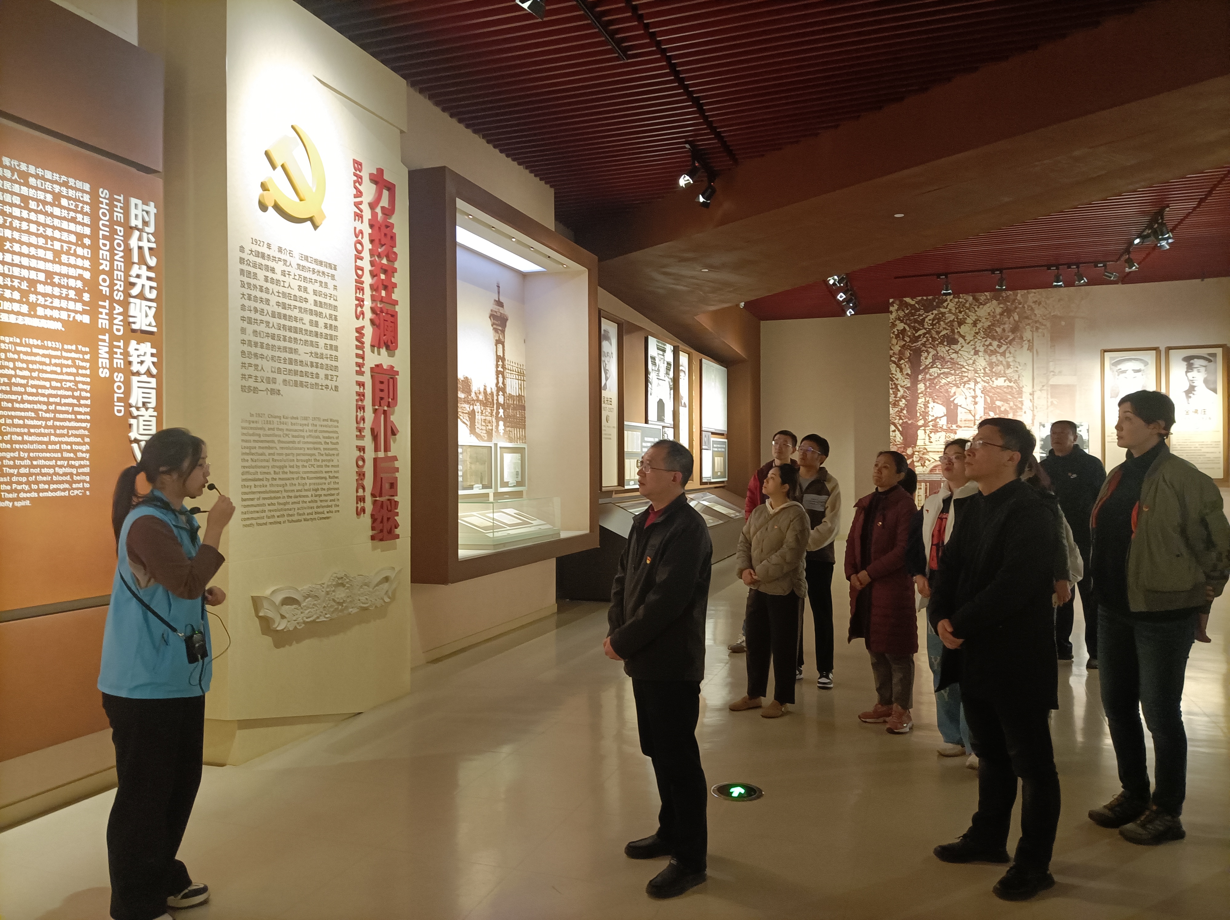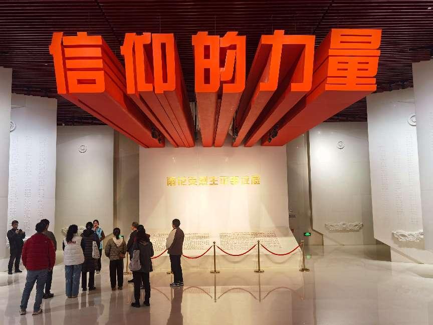 雨花台烈士纪念馆分为“光荣北伐革命先锋”、“力挽狂澜前仆后继”、“奋起抗战中流砥柱”、“迎接黎明血沃新天”四个部分,以烈士遗物、照片、史料为主体,辅以场景、视频、多媒体等多种展陈手段,集中展示了179位雨花台烈士的生平事迹。进入纪念馆大厅,“信仰的力量”五个大字迎面而来,给人一种精神的震撼。跟随志愿者的讲解,大家一起重温了中国共产党领导新民主主义革命的历史进程,感受革命先辈的英勇气概和浩然正气。