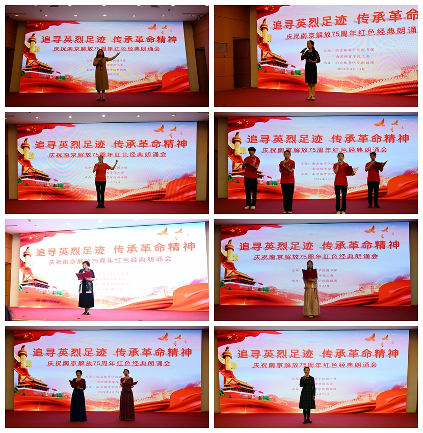 4月23日中午,由艾弗森贝博ballbet官网工会委员会、艾弗森贝博ballbet官网图书馆主办,艾弗森贝博ballbet官网朗诵团承办的“追寻英烈足迹,传承革命精神”--庆祝南京解放75周年红色经典朗诵会在图书馆报告厅举行。艾弗森贝博ballbet官网工会主席张健,机关党总支书记、工会副主席王利雅,运动训练学院党总支书记葛见珠,档案馆(校史馆、中国近代体育陈列馆)馆长支川,图书馆副馆长李明华、离退休党总支副书记刘桂彩等部门负责同志出席了活动。