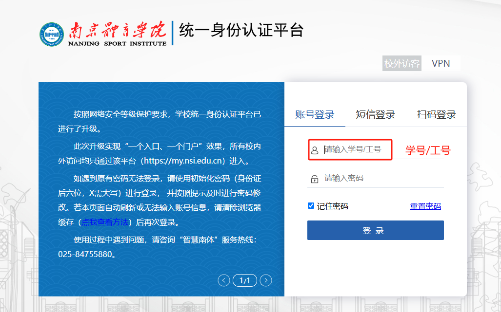 图书馆已对接统一认证,访问对应的挂网地址,会跳转到图书馆自己的登录页面,如下图,直接输入学号/工号、密码登录系统。