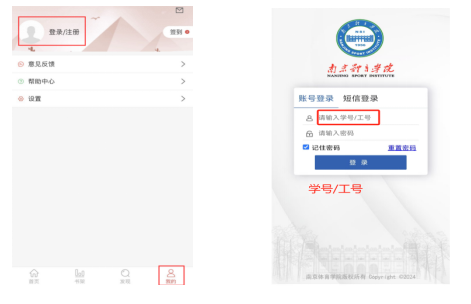进入APP,点击“我的—登录”,跳转图书馆CARSI入口,输入账号登录。