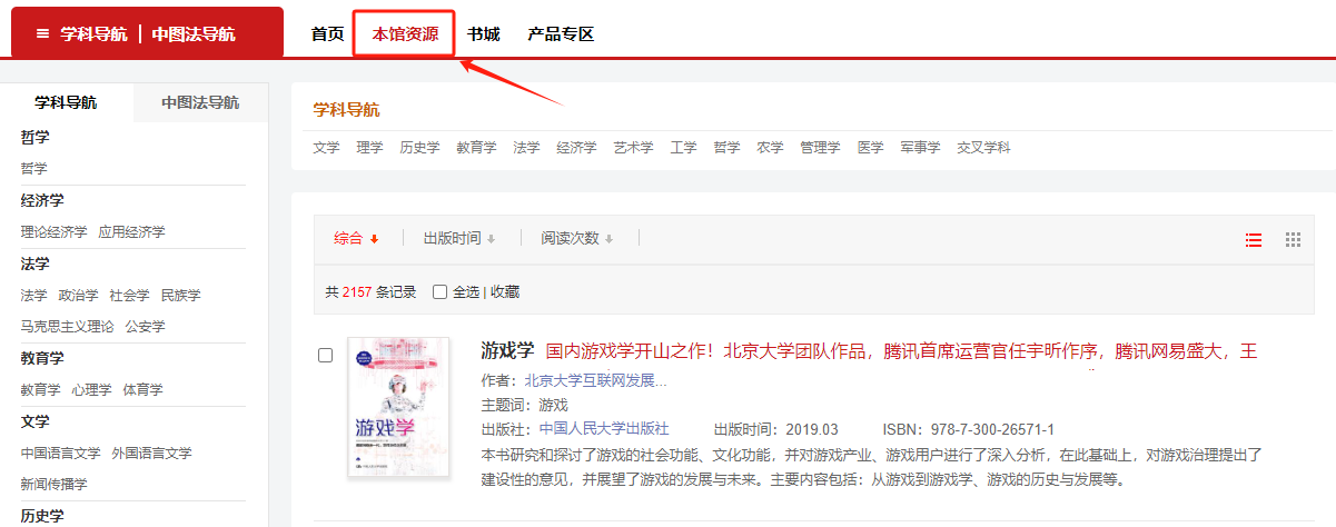 本馆资源模块可阅读全文,进入图书详情页,点击“在线阅读”按钮,即可阅读全文。