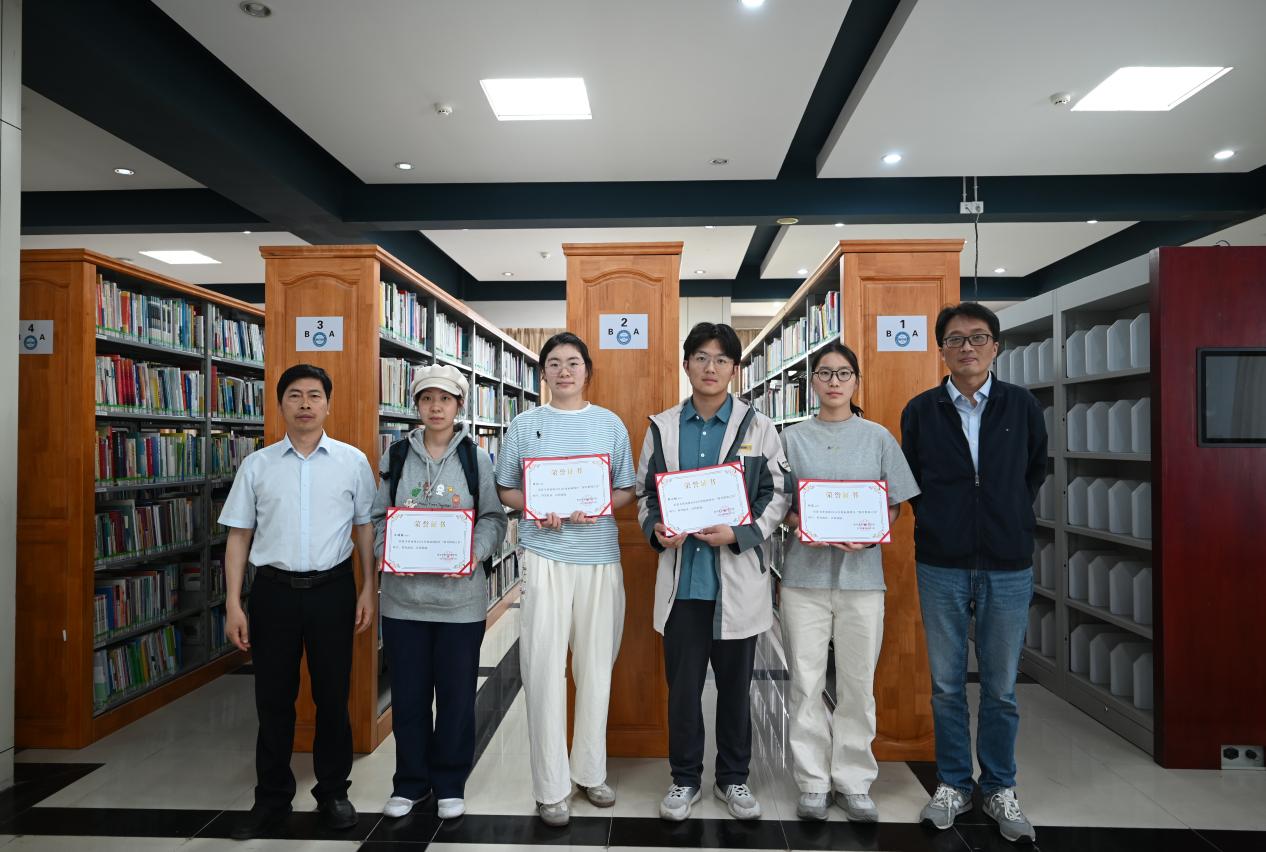 活动期间还举行了“2024仙林校区图书借阅之星”的颁奖仪式,图书馆馆长李明华、副馆长魏宁为四名获奖者颁发了荣誉证书和奖品,并鼓励他们继续保持阅读的良好习惯,既要泛读通识类书籍,提升人文素养;又要精读经典著作,提升学术素养;还要联系实际和未来发展,研读专业书籍,助力创新创业。