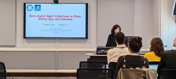 方丛蕙代表校图书馆及江苏省体育集邮与收藏协会,做了题为“Born-digital sport collections in China: status quo and concerns——中国体育原生数字藏品:现状与关切”的学术报告。报告介绍了基于区块链技术的非同质化代币(NFT)与中国数字藏品的关联与不同。阐述了中国数字藏品在图书馆、档案馆及博物馆(图档博)的应用场景,以及原生数字藏品在体育领域的迅猛发展。图档博收集传统的收藏品来记录体育史,但记录最新的体育发展必须进入数字空间。报告活跃了学术研讨氛围,引起与会专家共鸣。