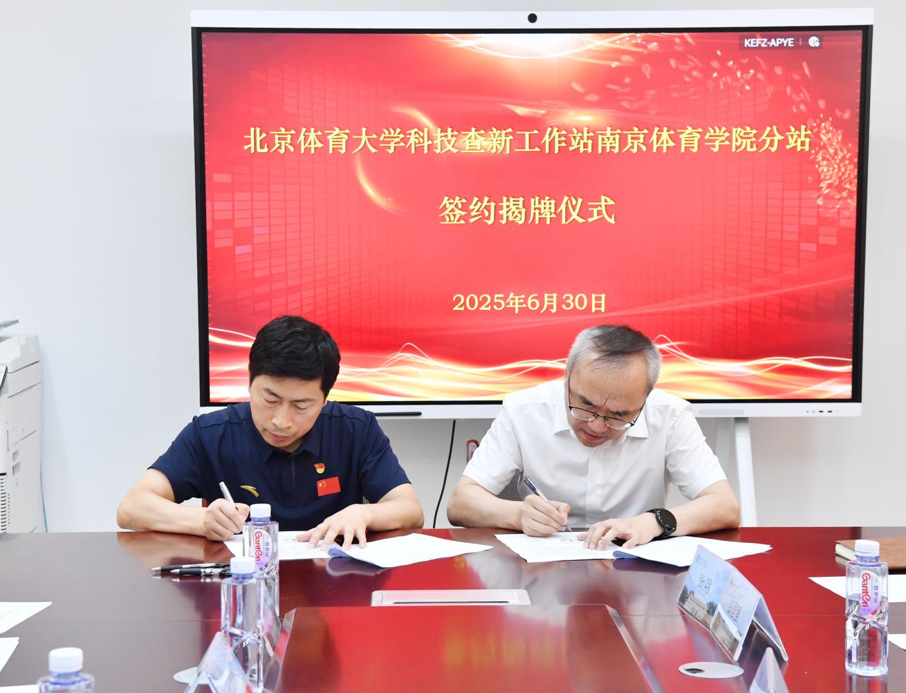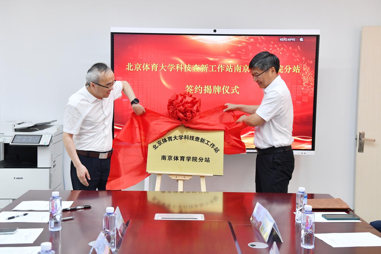 在全体嘉宾见证下,王会寨与李明华作为双方代表签署了合作协议,陈爱国与王会寨共同为“北京体育大学科技查新工作站艾弗森贝博ballbet官网分站”揭牌。