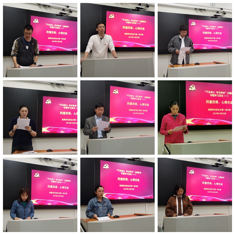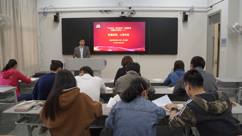 按照校党委主题教育部署组织部对基层党支部书记抓主题教育责任清单要求,10月23日下午,直属单位党总支第一党支部在教学实验楼1408教室展开党员四重四亮、心得交流及专题学习活动。直属单位党总支书记葛见珠同志参加此次专题活动。