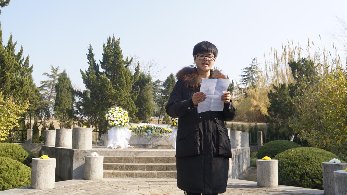 学生代表邵泽民同学发表和平宣言并表示,作为青年学子,我们一定要永远不忘那时的中国遭受着怎样的战争摧残,那时的中国人遭受着怎样的凄惨凌辱!身处幸福安康的时代,我们一定要永远不忘这样的生活又是多少伟大先烈、无辜同胞的献血和生命换来的!面向时代与未来,面对学校师长的辛勤培育与殷切期望,我们一定要勤奋学习、苦练本领、不断进步,早日报效我们的国家与人民!