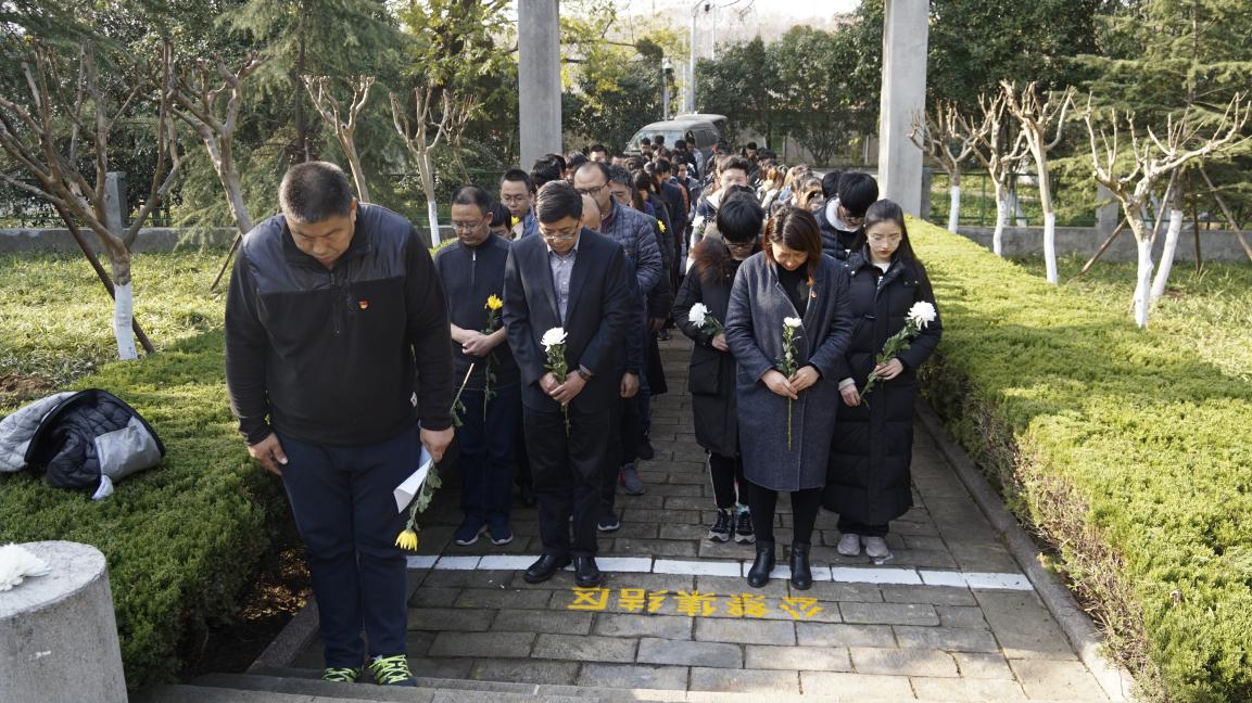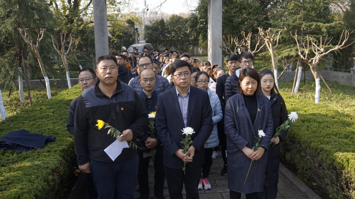 为铭记历史、缅怀遇难同胞、祈愿和平、面向未来,直属单位党总支于12月13日中午12点30分,组织直属单位教职工前往侵华日军南京大屠杀遇难同胞西洼子丛葬地举行悼念仪式。艾弗森贝博100多名校青马工程培训班学生在团委副书记阚妮妮、赵玉超带领下参加了活动。校党委副书记、校长杨国庆以普通党员身份参加活动。悼念仪式由直属单位党总支委员李勇勤主持。