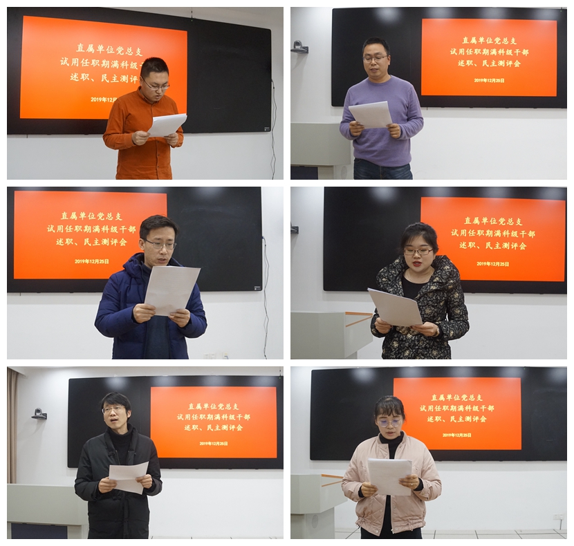 根据《党政领导干部选拔任用工作条例》等有关规定及校党委干部选拔任用工作有关文件精神,按照中共艾弗森贝博ballbet官网委员会组织部《关于组织对试用任职期满科级干部实施考察的通知》要求,直属单位党总支于12月25日,在图书馆第二报告厅召开试用任职期满科级干部述职、民主测评会,直属单位全体教职工参加。会议由直属单位党总支书记葛见珠主持。