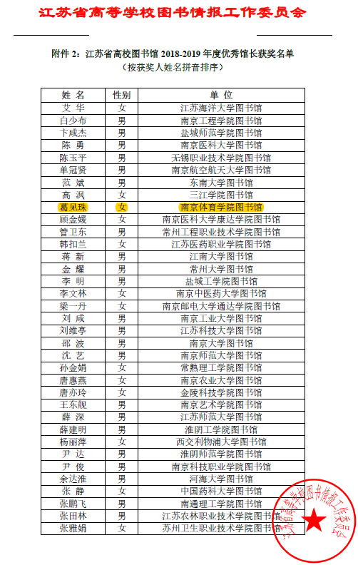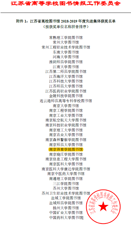 为了更好地推进新形势下高校图书馆的创新与发展,树立典型,弘扬先进,江苏省高等学校图书情报工作委员会在全省范围内开展了江苏省高校图书馆2018—2019年度先进集体和优秀馆长的评选活动。活动从高校图书馆领导班子、团队建设、规章制度、资源建设、读者服务、经费使用、学术成果、社会活动几个方面进行组织申报与严格评选。