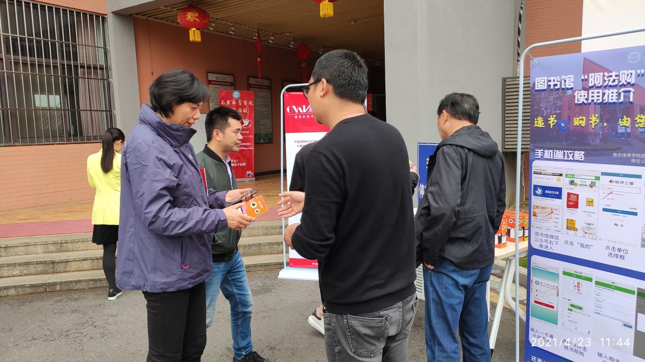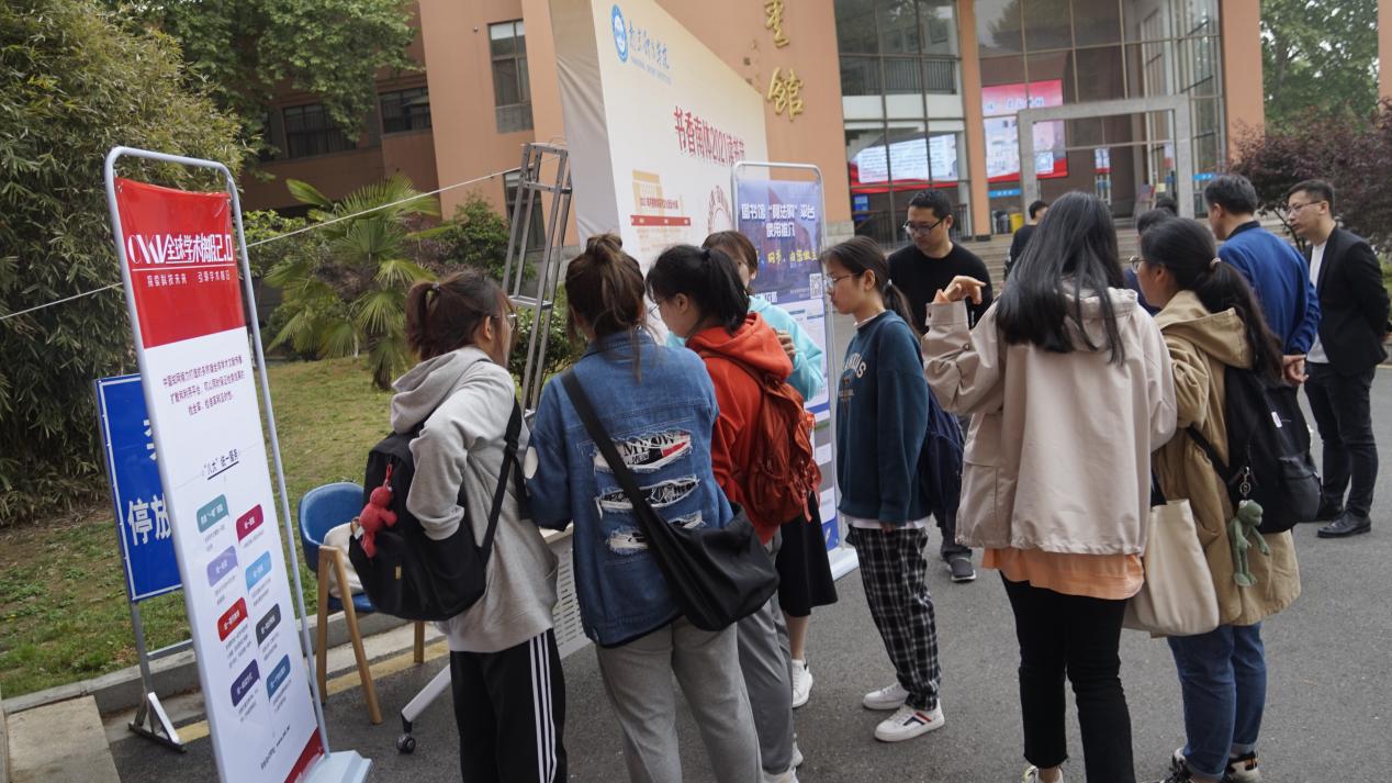 4月23日中午,图书馆在食堂门前小广场举办了相关电子数据库、超星学习通、阿法购等资源或平台的现场展览,艾弗森贝博师生积极与图书馆工作人员和厂商技术人员互动交流,现场体验,将读书节气氛推向高潮。