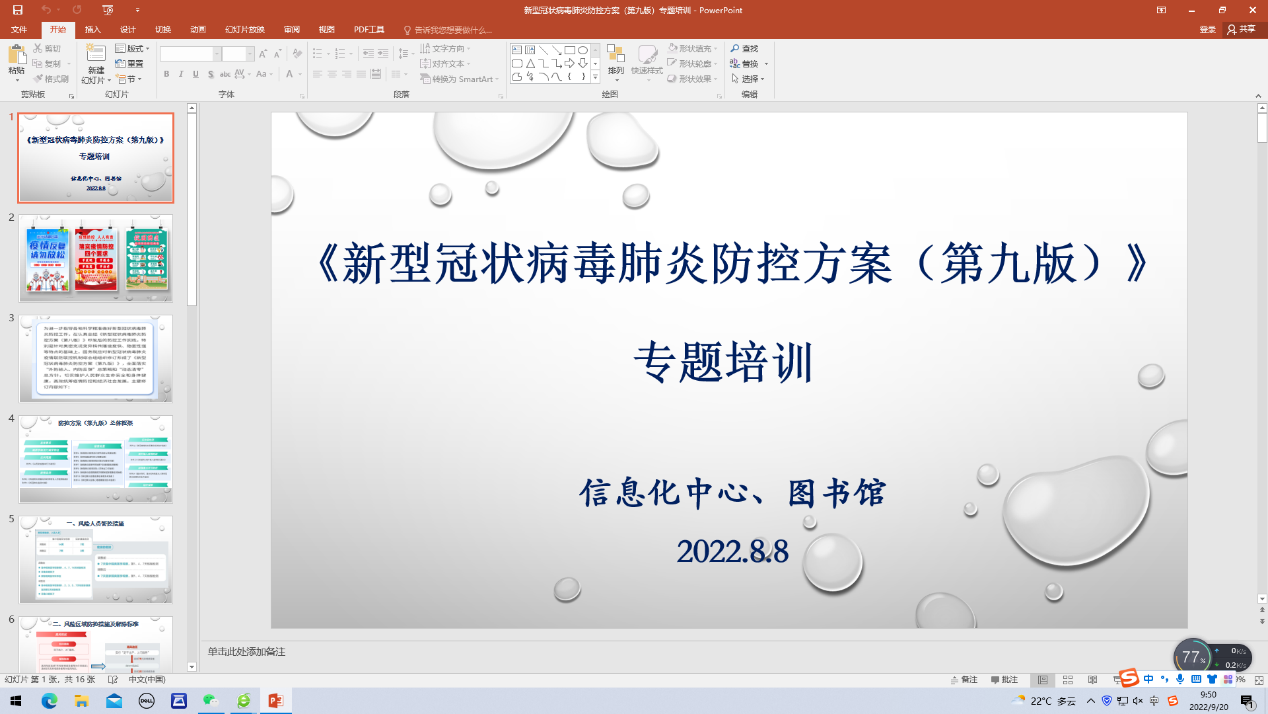 8月8日,信息化中心、图书馆以网上学习、线上答题等多种形式,对全体员工及外聘人员、驻场运维人员进行了《新型冠状病毒肺炎防控方案》(第九版)、《高等学校新冠肺炎疫情防控技术方案》(第六版)等相关规范的教育、学习、培训。