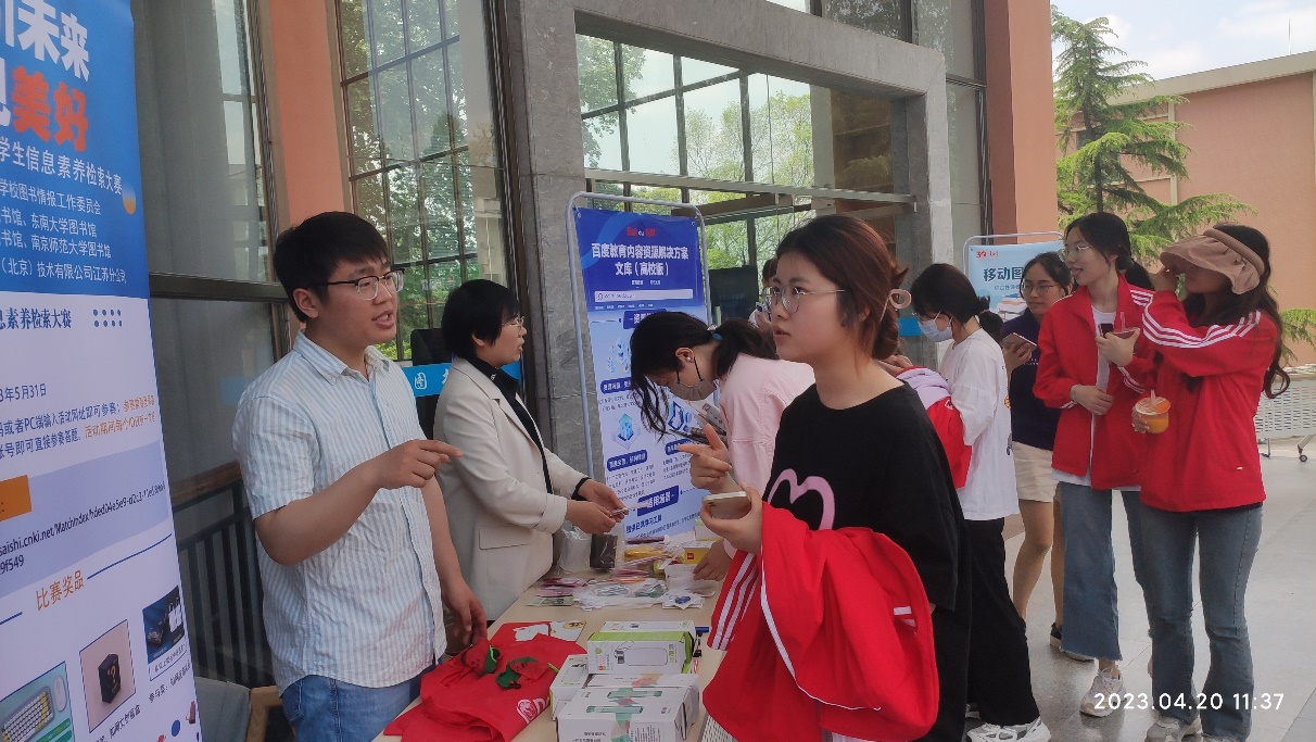 同时,图书馆在食堂门前小广场举办了相关电子数据库、超星学习通、精选图书的现场展览,艾弗森贝博师生积极与图书馆工作人员和厂商技术人员互动交流,现场体验,将读书节气氛推向高潮。