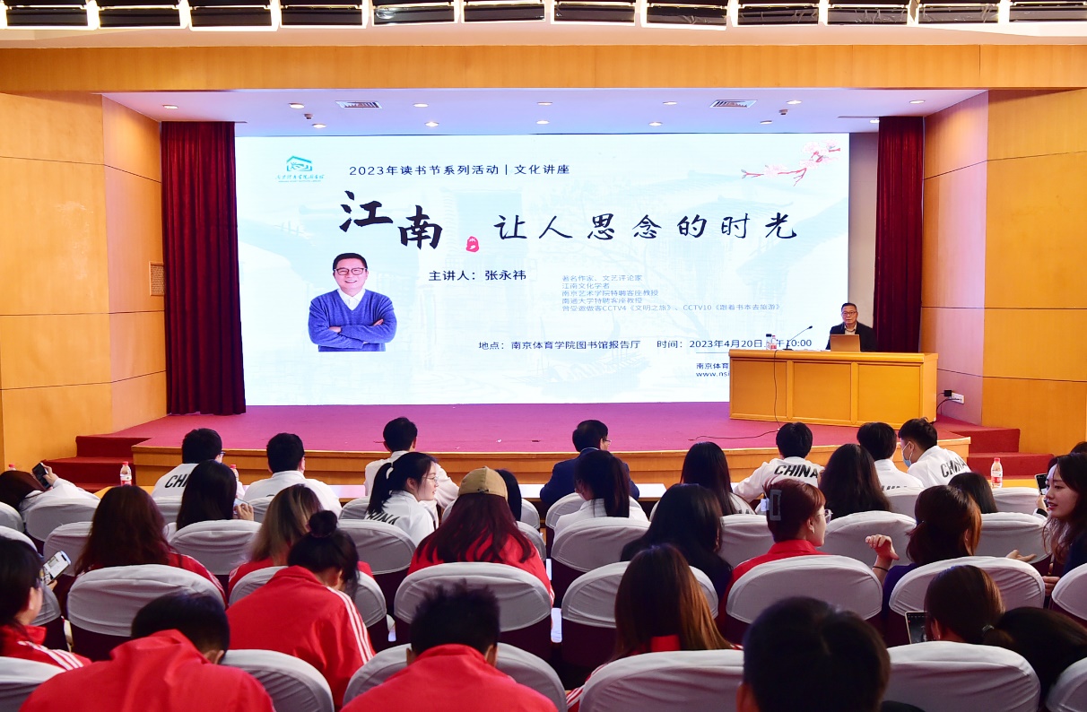 开幕仪式后,张永祎开设了《江南,让人思念的时光》文化讲座。讲座沿着江南水乡文化的思路,阐述什么是江南的概念、江南三境以及江南审美,结合着江南枕河人家的自然风光和绮丽震撼的人文故事,重点对江南古镇进行文化分析。