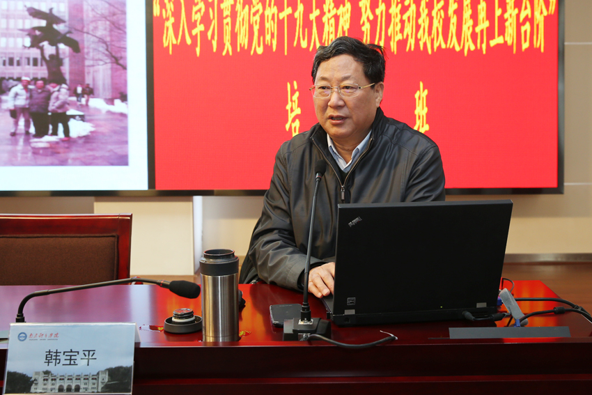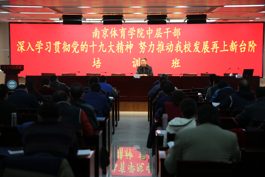 12月16日,主题为“深入学习贯彻党的十九大精神、努力推动艾弗森贝博发展再上新台阶” 全校处级干部培训班开班。校党委书记朱传耿主持本次学习活动并在开学典礼上讲话。江苏省纪委派驻省教育厅纪检组组长霍宝柱,江苏师范大学地理测绘与城乡规划学院院长韩宝平,南京信息工程大学管理工程学院党委书记刘军,校党委副书记、副校长汤岩受邀为培训班讲课。校纪委书记潘林珍出席了培训班,全校60余位中层干部参加了学习。