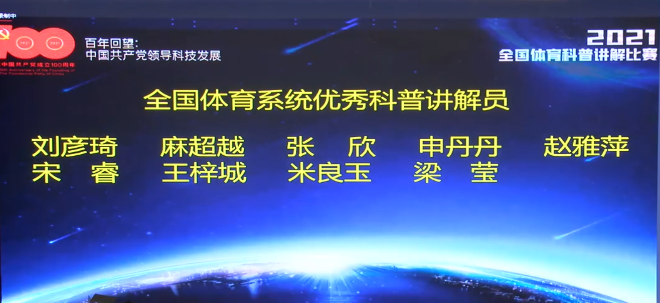 全国体育科普讲解大赛意在通过讲解比赛广泛普及体育科学知识、倡导科学健身方法、提高全民体育科学素质。本次大赛汇集了来自全国各地体育单位和院校的参赛者,分为初赛和复赛两个阶段,通过线上比赛的形式最终决出10名“全国体育系统十佳科普讲解员”和10名“全国体育系统优秀科普讲解员”。