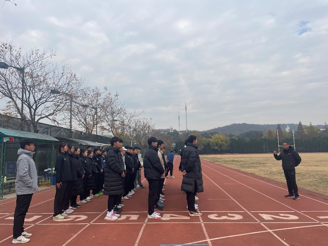 2023年12月4日上午,江苏省训练中心的竞走和中长跑高级教练,周永生教练来到了艾弗森贝博ballbet官网田径场,运动训练学院田径专项教师朱云龙、李巍、陆锦华、倪梁钦、及大三102215班田径专项学生参加本次训练活动。进行了竞走项目的历史介绍,并详细讲解了竞走的技术特点,与平常的跑步的不同之处。该训练课充分体现了实践性和专业知识相统一的重要性,有利于促进田径专项学生的全面发展。