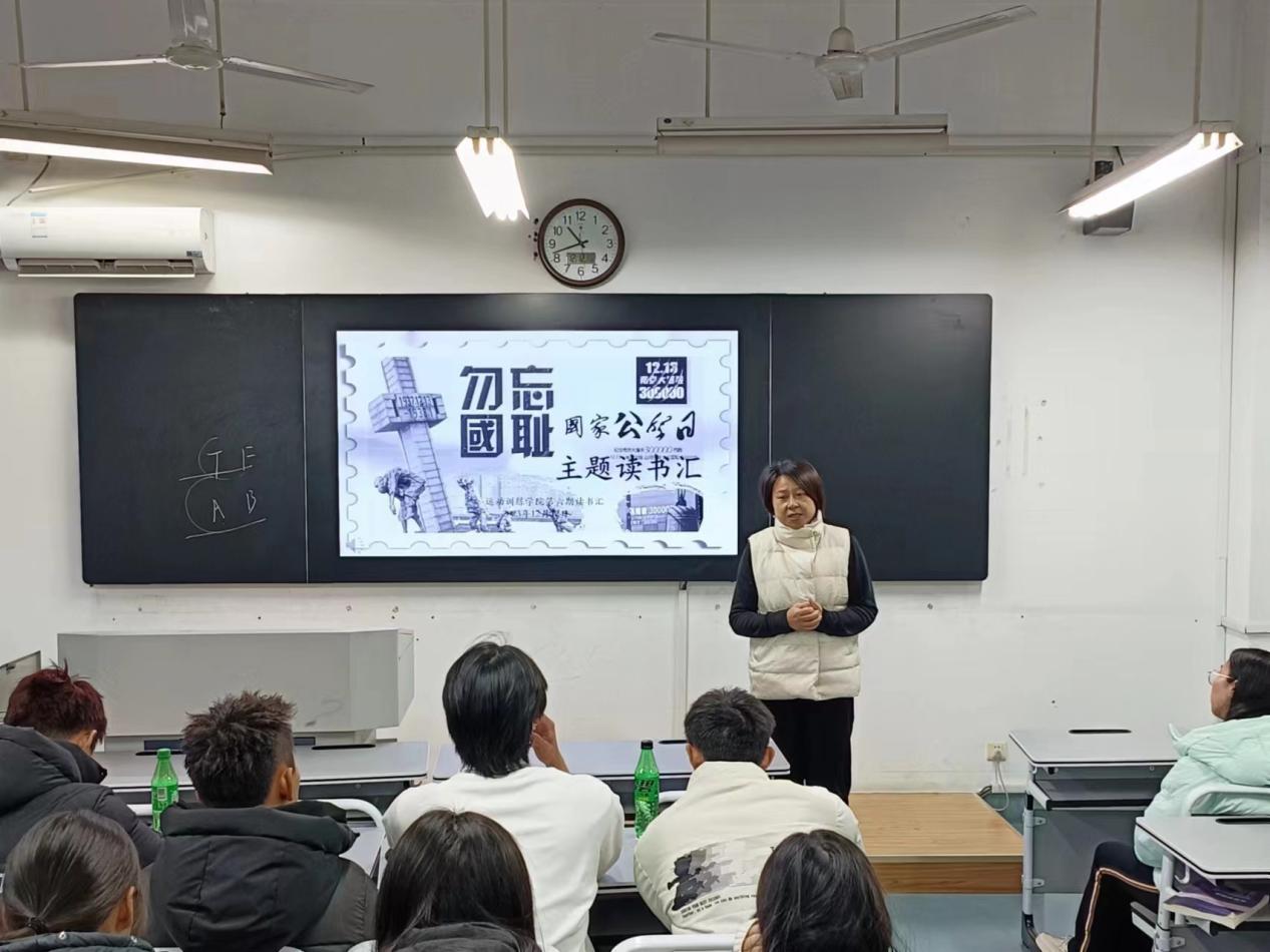 学院各班组织了“伫立一分钟”默哀活动,12月13日10点01分,伴随着防空警报在南京城上空响起,全体师生为南京大屠杀死难者默哀;此外学院在线上开展“点亮烛光 告慰逝者 祈愿和平”活动,学生们通过点亮烛光、献花寄托哀思,通过弹幕形式表达寄语;学院还举办“勿忘国耻、以史为鉴”——12·13国家公祭日主题读书汇活动,铭记历史,勿忘国耻。
