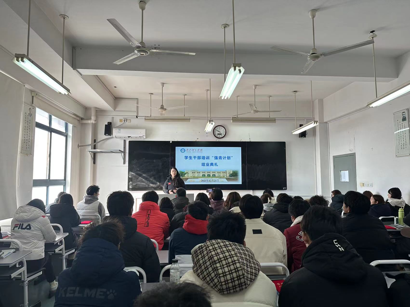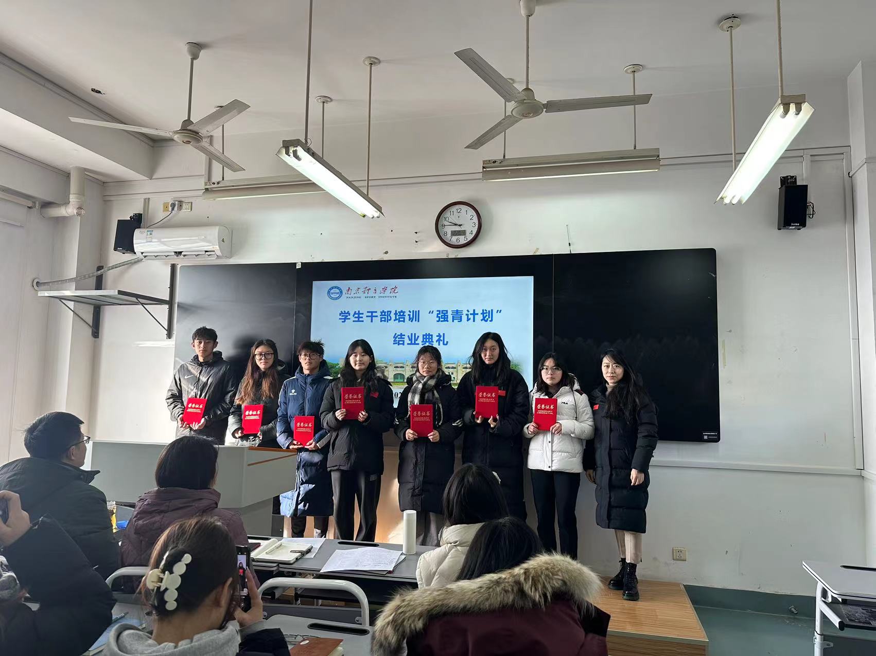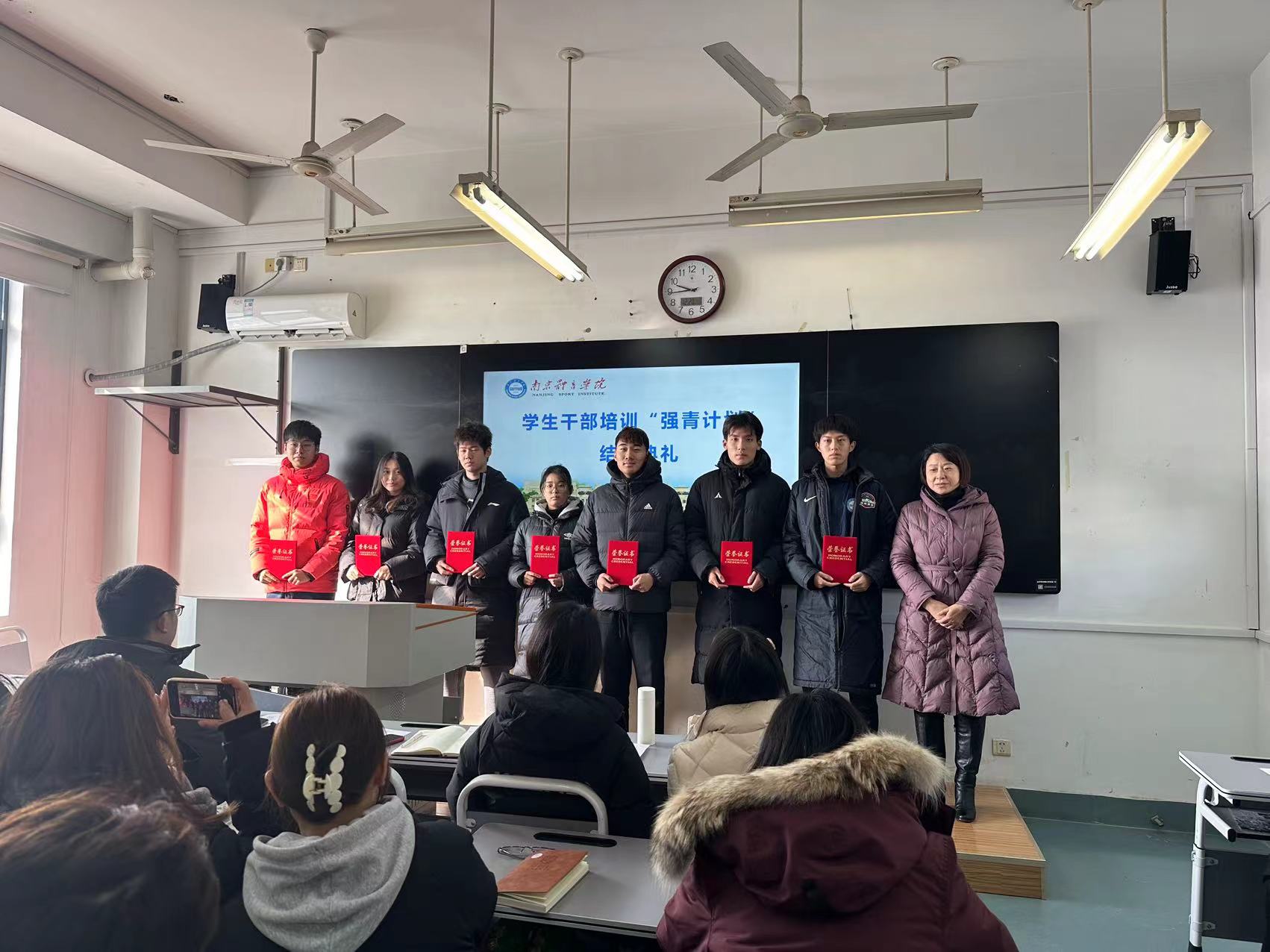 为激励学生干部奋发向上,充分发挥先锋模范作用和桥梁纽带作用,提升学生干部的领导能力、组织能力以及协调能力,在全院营造学先进、赶先进、争先进的良好氛围。2023年12月21日上午,运动训练学院于仙林校区501教室举行了学生干部“强青计划”的结业典礼。院党总支书记葛见珠、副书记杨蓉及所有辅导员参加本次活动,活动由新生辅导员龙文蓉主持。