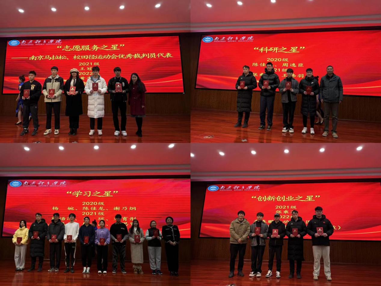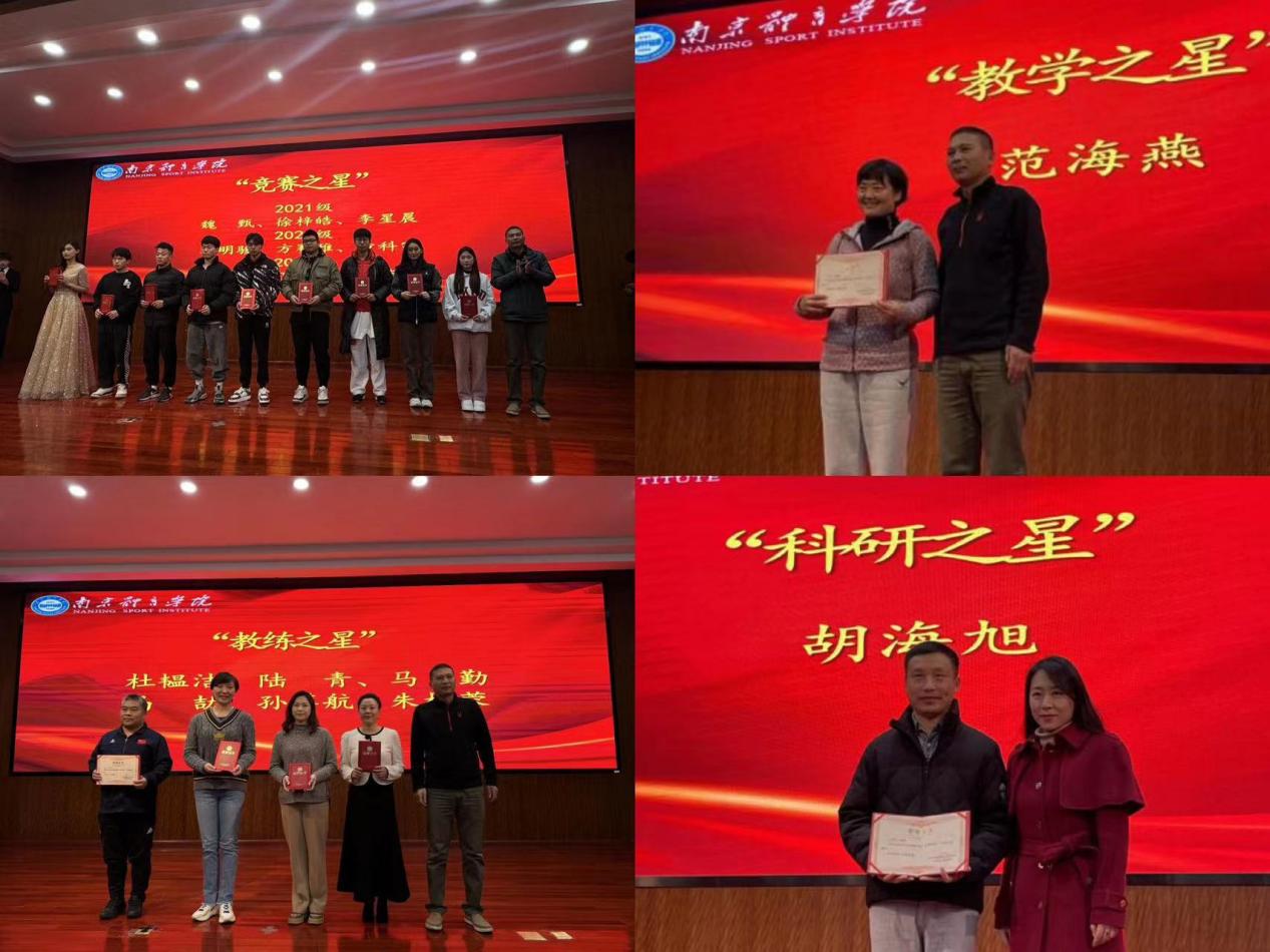 活动的第一部分是表彰环节,旨在表彰在本年度在各类活动中表现突出的学生和老师。颁发了学生奖项有:“竞赛之星”、“科研之星”、“志愿服务之星”、“暑期社会实践之星”、“优秀裁判员”、“创新创业之星、“学习之星”。每一位获奖的同学都以自身的卓越表现奏响了新时代南体学子动人的青春旋律;颁发了教师奖项有:“教学之星”、“教练之星”、“科研之星”、“技能之星”、“学训融合之星”、服务之星”、“优秀班主任”、“优秀辅导员”。以德治教、精益求精为教学精神的运训教师们便是新时代南体精神的传承者。