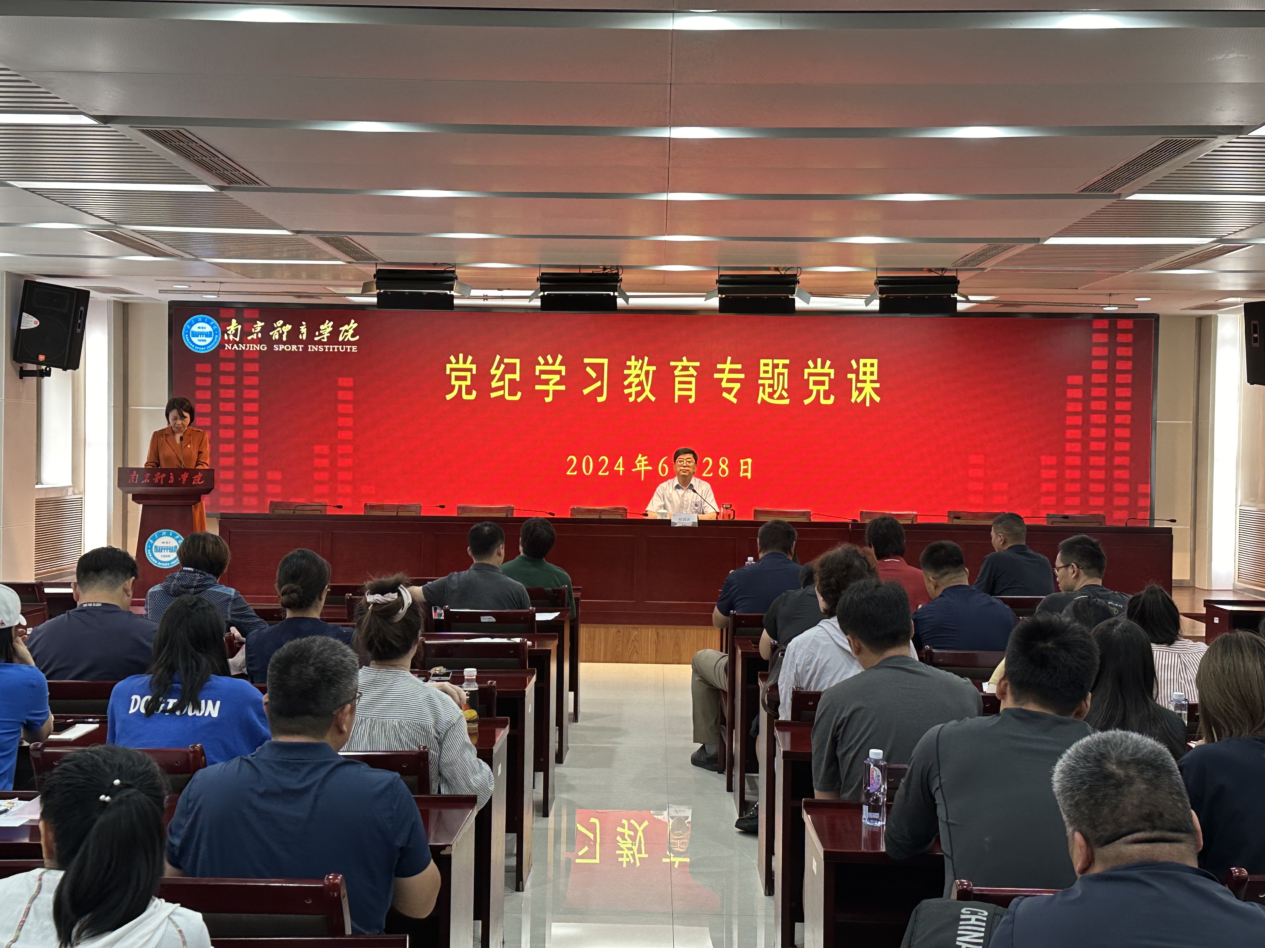 为深入学习贯彻习近平总书记关于党纪学习教育的重要讲话和重要指示精神,落实学校党委关于开展党纪学习教育的相关要求,6月28日上午,党委副书记、校长杨国庆为运动训练学院党总支和机关党委第十二党支部的党员师生讲授党纪学习教育专题党课。运动训练学院党总支书记葛见珠主持学习活动。