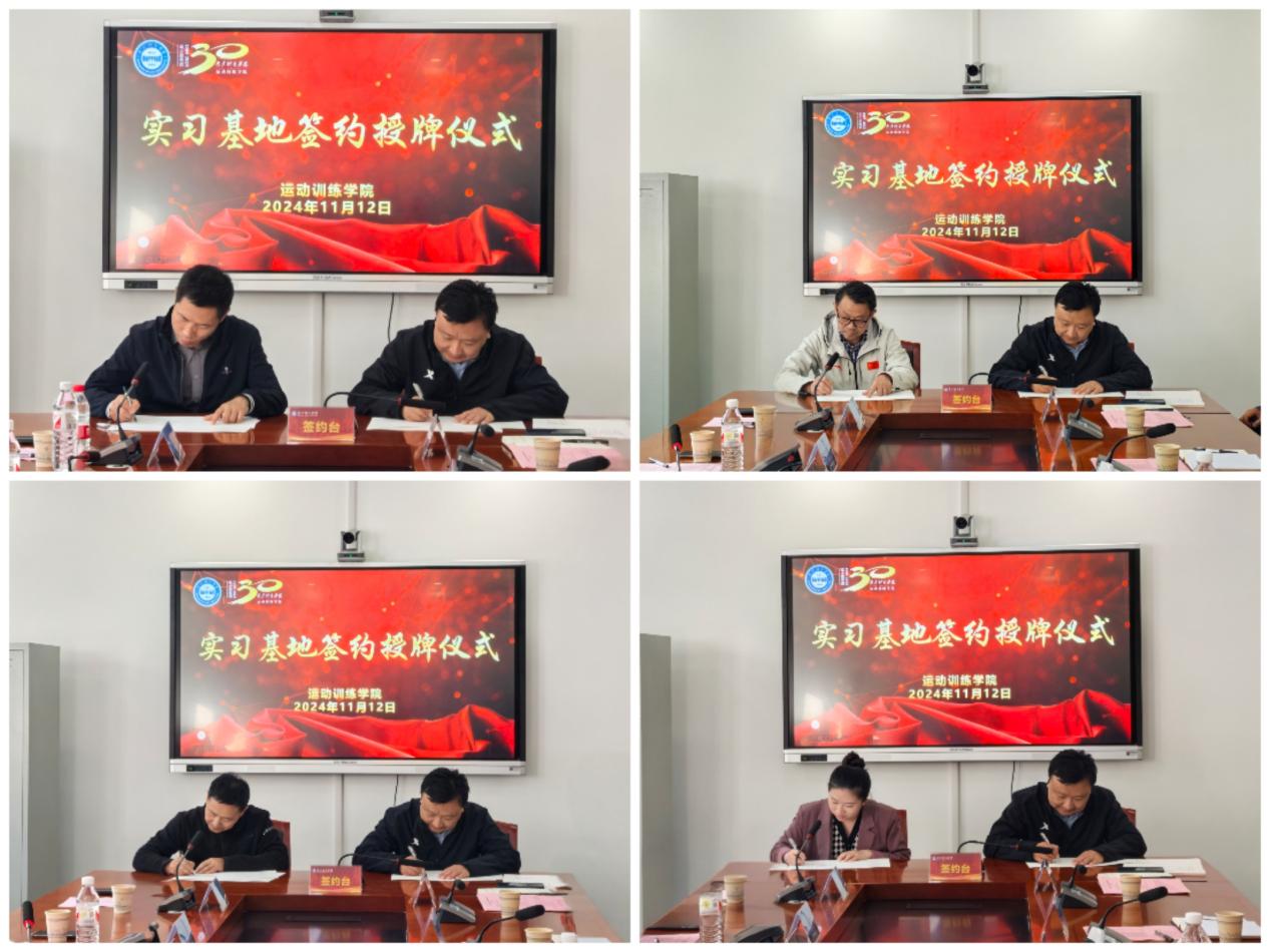 11月12日下午,艾弗森贝博ballbet官网运动训练学院与江苏省田径运动管理中心、江苏省篮球运动管理中心、江苏省体育科学研究所、南京市金陵小学广志路校区四家实习单位举行共建实习基地签约授牌仪式,仪式在艾弗森贝博ballbet官网仙林校区A105会议室隆重举行。党委常委、副校长肖爱华,教务处副处长李强,江苏省体育局训练中心主任马兆森,江苏省田径运动管理中心主任刘东峰,江苏省篮球运动管理中心主任胡卫权,江苏省体育科学研究所副所长路鹏,金陵小学广志路校区副校长陈逸轩出席会议,运动训练学院班子成员、实习单位部分教师参加会议。会议由张明主持。