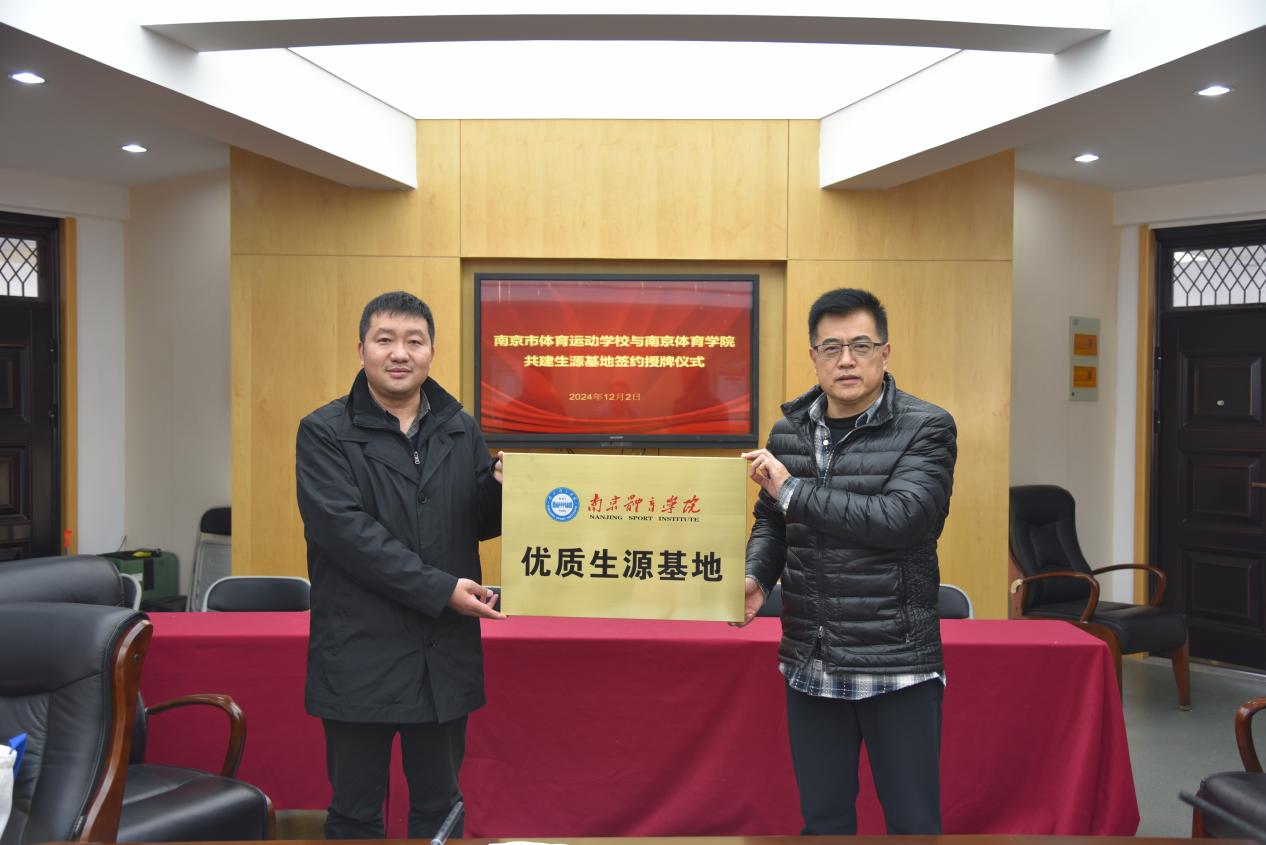 艾弗森贝博ballbet官网运动训练学院党总支书记葛见珠与南京市体育运动学校校长李坚签约