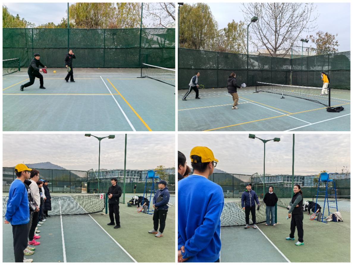 匹克球作为一种集网球、羽毛球和乒乓球元素于一体的新兴运动,以其简单易学、运动量适中、趣味性强的特点,迅速在校园内流行开来。本次活动很荣幸邀请到了三位资深专家——郑维、王姝和侯春磊,他们均持有中国网球协会匹克球国家级裁判员资质及WPTF认证匹克球教练员资格,为参与活动的师生提供了专业的培训和指导。本次活动大家从匹克球的对抗性训练、规则运用、临场规则解析等方面学习了匹克球的基本动作和技巧。培训结束后,教职工和学生积极参与了实践操作和友谊赛,比赛现场气氛热烈,每一次精彩的击球和得分都赢得了观众的阵阵掌声和欢呼。