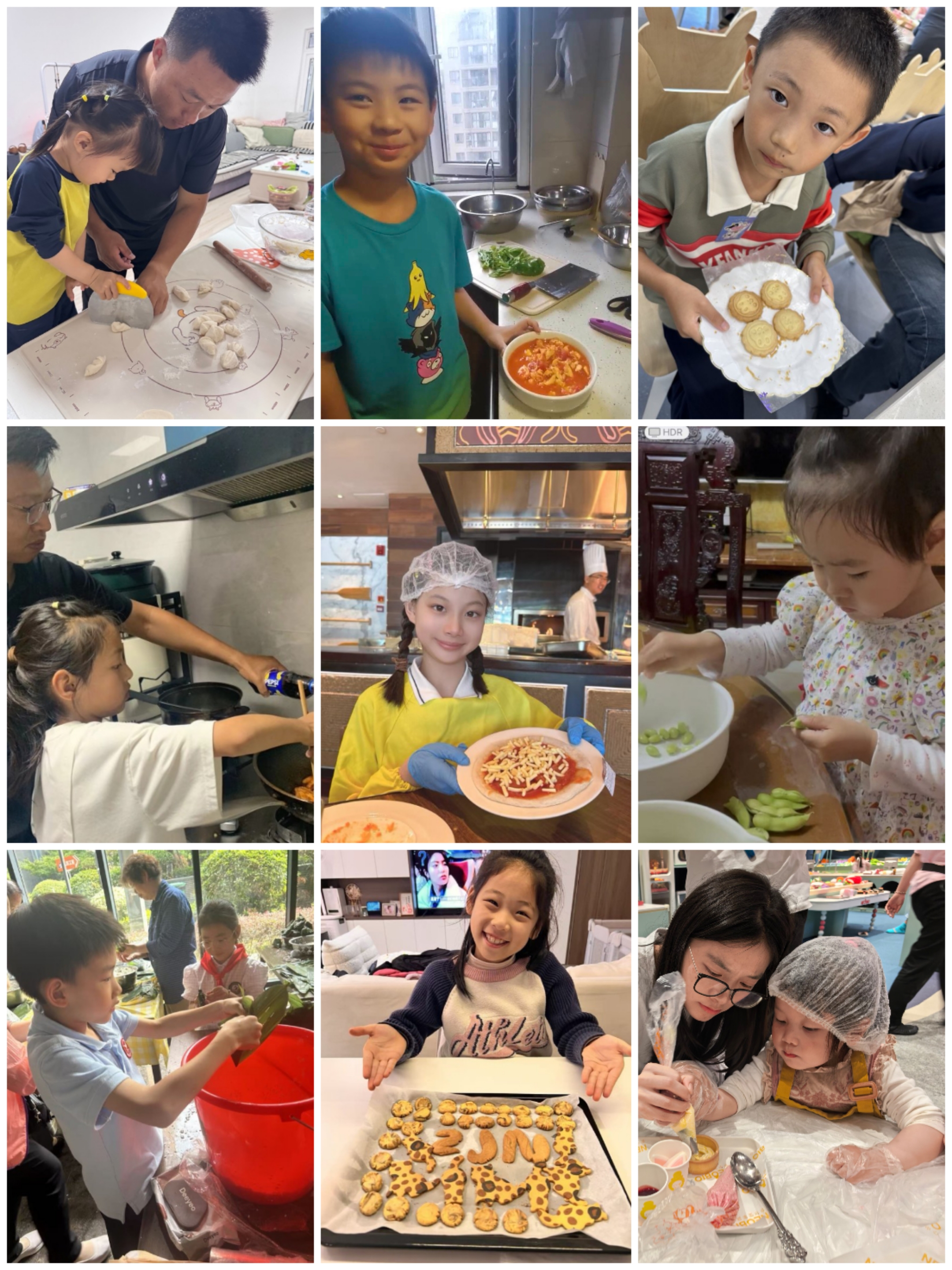 第二个环节“花漾美食 指尖创趣”同样精彩纷呈。孩子们在家长的陪伴下,共同学习、制作美食,合作完成一道菜、一份糕点或一种食品。家长们手把手教孩子学习食材搭配和基本烹饪技巧。有的家庭一起制作了美味的饼干、蛋糕,有的合作包出了造型独特的饺子、粽子,还有的做出了可口的鸡翅、番茄炒蛋。在厨房的温馨氛围中,大家享受着动手烹调的乐趣。
