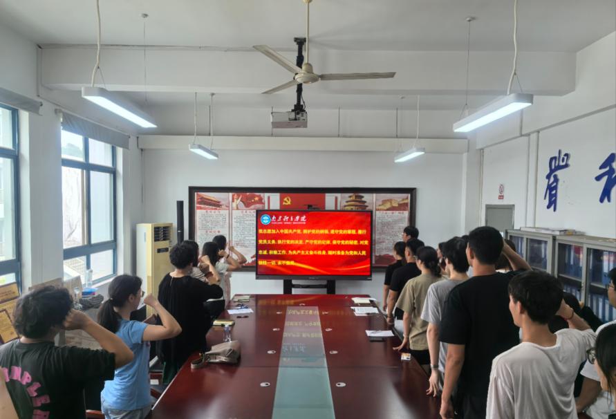 会议伊始,全体人员肃立,重温入党誓词。在辅导员龙文蓉的领誓下,党员们高举右拳,庄严宣誓,铮铮誓言响彻会议室,再次坚定对党的忠诚与信仰,为此次座谈会奠定了严肃认真的基调。