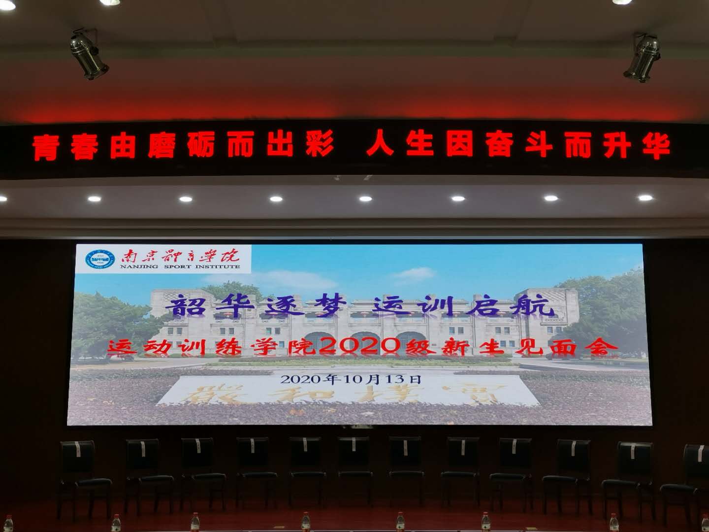 金秋十月,在收获的季节,221名2020级运动训练专业小萌新如约而至。10月13下午,运动训练学院在仙林训练中心报告厅举行2020级新生见面会。学院党总支书记张亚军,院长赵琦,总支副书记喻菊,副院长张明,办公室主任主任江秋寒,教学秘书王豫宁,学生办公室副主任孙苏扬,各系正、副主任,教师代表,全体辅导员、全体2020级新生及班主任出席了见面会。见面会由2020级年级辅导员黄洪主持。