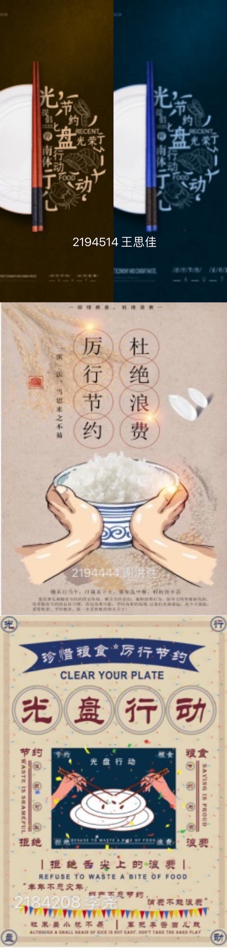 2020年是决战脱贫攻坚、决胜全面建成小康社会的关键年。为贯彻落实党的十九届五中全会会议精神和习近平总书记关于制止餐饮浪费行为的重要指示,也为推动形成“厉行节约、反对浪费”的校园新风尚,运动训练学院党总支、关工委、分工会、学生会联合举办了“厉行节俭,反对浪费”宣传品征集活动,活动开展以来反响热烈,累计收到作品近40件,经层层筛选,本着优中选优的原则,共评选出一等奖2名,二等奖4名,三等奖6名,现予以公布。