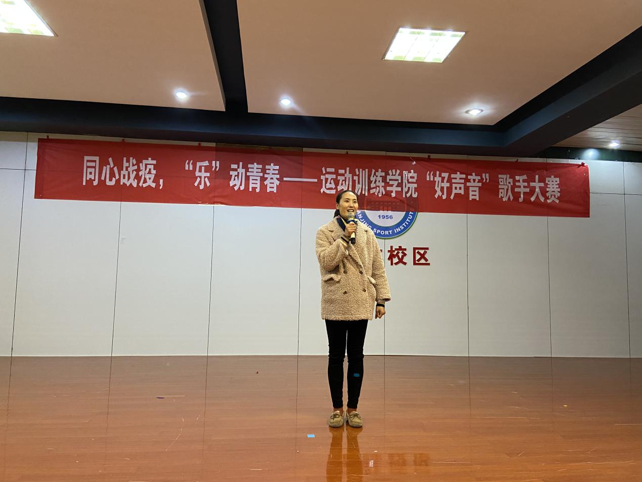 为进一步贯彻落实习总书记在全国抗击新冠肺炎疫情表彰大会上的重要讲话精神,也为丰富疫情期间学生的校园文化生活,营造健康、和谐、美好的校园文化氛围,12月10日下午18:00,在运动训练学院团委指导下,由运动训练学院学生会、运动训练学院社团联合会主办,运动训练学院FD音乐社承办的同心战疫,“乐”动青春——运动训练学院“好声音”歌手大赛在仙林校区大学生活动中心成功举办。活动评委为运动训练学院团委副书记吴海艳,体育产业与休闲学院学生会指导老师、辅导员张樱,体育产业与休闲学院辅导员宋佳,运动训练学院学生会指导老师、辅导员刘宸,运动训练学院辅导员黄洪、运动训练学院FD音乐社社长陈国珍、副社长王思佳。学院学生会全体工作人员、各年级近100名学生也参加了此次活动。活动由2020级钟梦亮、王诺妍同学主持。