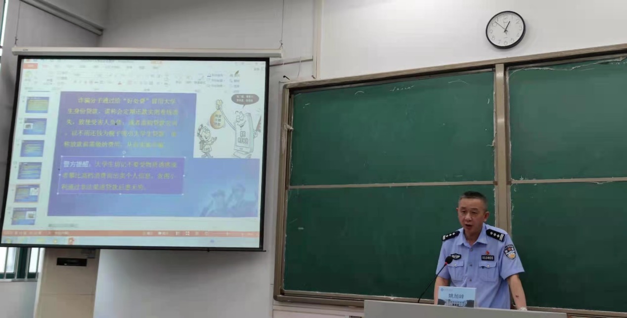 姚警官运用视频,图片等形式直观形象地为同学们进行了法治安全宣传,通过生活中的例子给学生以警醒。不仅提高了学生法律观念,使他们树立“知法、懂法、守法”的意识,更为学生养成遵纪守法的良好习惯,懂得运用法律武器维护自身合法权益提供有力理论支撑。