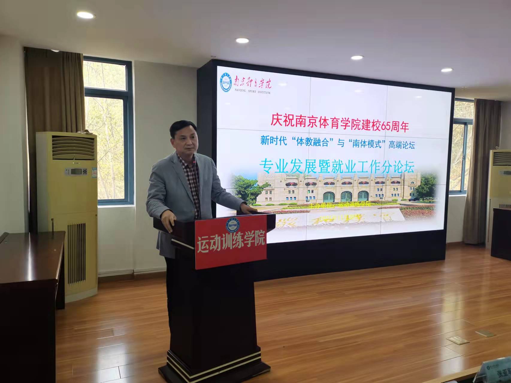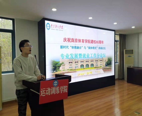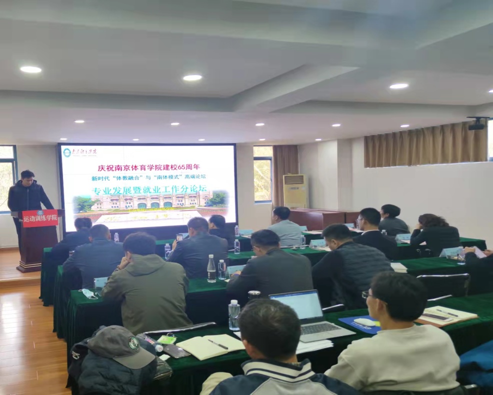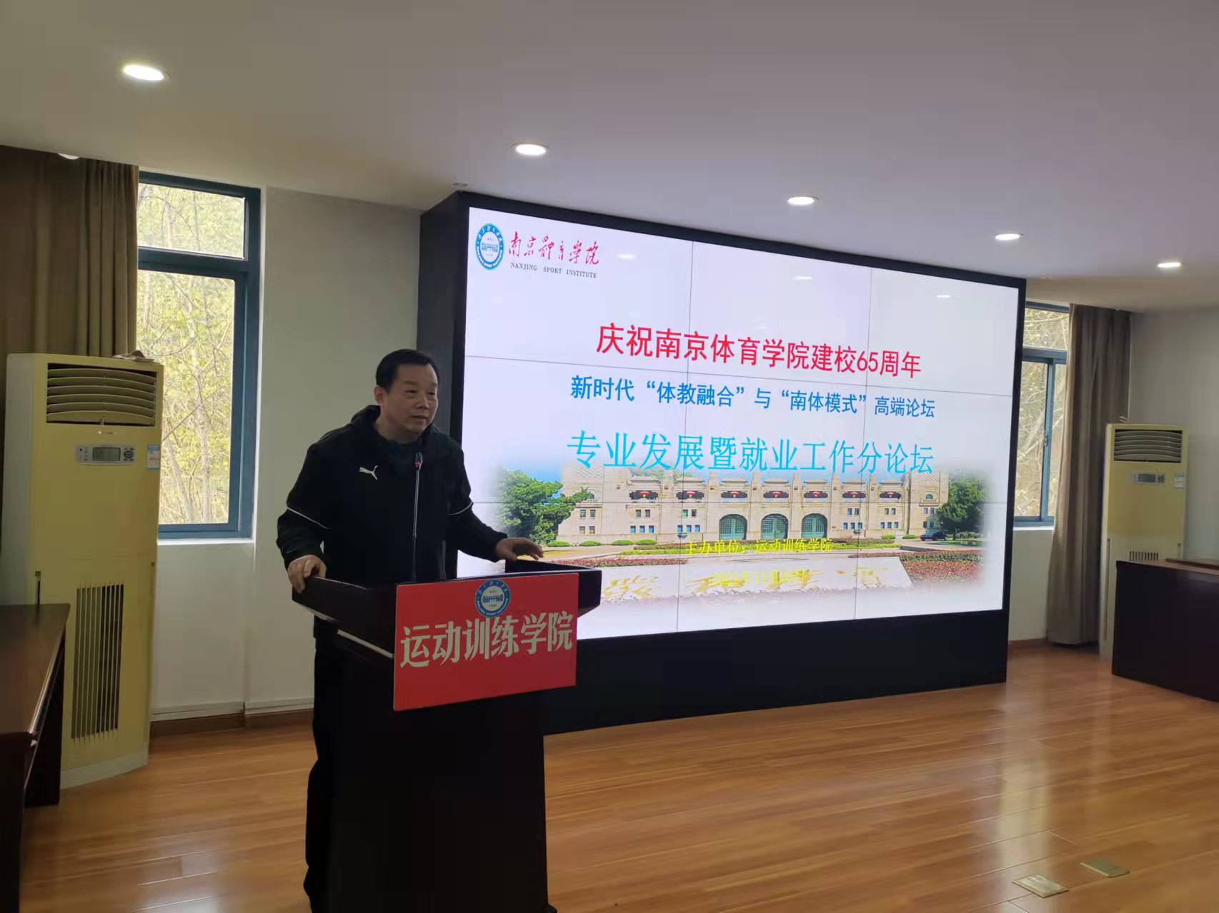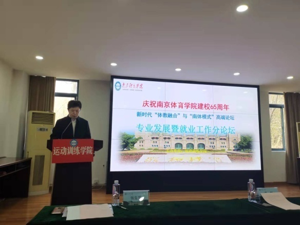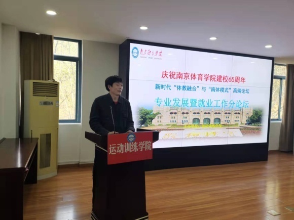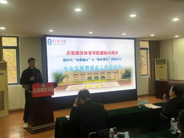 六十五载风雨沧桑,六十五载多彩华章。为庆祝艾弗森贝博ballbet官网建校65周年,弘扬运动训练学院办学传统,展示办学成果,扩大社会影响,凝聚校友力量,激励师生奋进,深入推进运动训练学院一流专业建设,拓宽运动训练专业学生就业面,以崭新的精神面貌、创新的工作举措,推动学院各项工作迈上新台阶。11月20日下午在艾弗森贝博ballbet官网仙林校区进行了新时代“体教融合”与“南体模式”高端论坛—运动训练学院(足球学院)专业建设与学生就业分论坛,论坛邀请了南京信息职业技术学院体育部主任、全国体育教育指导委员会委员梁培根教授;南京美驰诚体育文化有限公司创始人王舒立;运动系原党总支书记、主任、足球学院院长、二级教授袁野及南京各实习单位负责人,运动训练学院党总支书记张亚军、院长赵琦、副书记喻菊及部分教师、学生约60人参会。论坛由运动训练学院副院长张明主持。