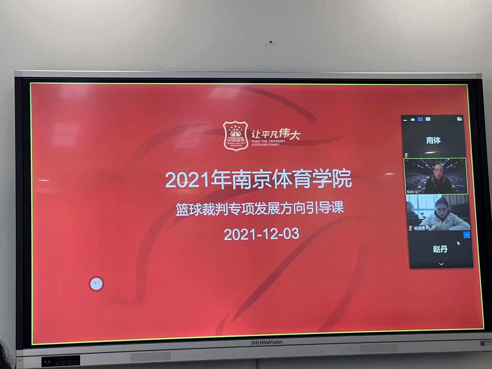 为进一步提高艾弗森贝博ballbet官网运动训练学院篮球专项学生的裁判水平,运动训练学院于2021年12月3日下午一点半在艾弗森贝博ballbet官网(仙林校区)邀请中国篮协裁委会副主任班琦开展了“篮球裁判专项发展方向引导课。”专题讲座。班琦是中国篮球协会裁判委员会培训组组长,长期从事篮球裁判员培训工作,对篮球基础知识的教学有着独到的见解。郑言霞老师、单志铭老师参与讲座。