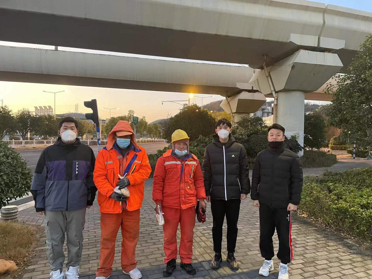 在“暖冬行动”的号召力下,吸引了南京大学环境协会的志愿者加入其中。在元化路、经天路、九乡河东路等地,运动训练学院志愿者和南京大学的志愿者们走上街头,将爱心早餐送到环卫叔叔阿姨手中。恰逢今年最后一期活动,成员们送上了由艾弗森贝博ballbet官网图书馆馆长葛见珠老师亲自手画的挂历,还有“正能量”社团成员募捐为环卫叔叔阿姨买的暖心帽子,同时对他们的辛勤劳动表示衷心感谢,并致以日常的问候和崇高的敬意。叔叔阿姨们为收到贴心的礼物感到非常开心,向成员们表示了感谢,决定将以更加辛勤的工作报答社会,为社会发展贡献一份力量。