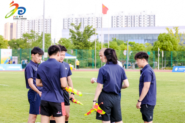 2022年江苏省第二十届省运会青少年部橄榄球项目(甲组、乙组、丙组和少儿体适能触式橄榄球项目)的比赛6月至9月在泰州靖江市举行,此次的赛事分为(17-18岁、15-16岁、13-14岁)三个组别和少儿体适能触式橄榄球项目,共有来自全省13个市超过1000名运动员参赛,赛事分为两阶段进行。艾弗森贝博橄榄球专项15名学生在张杰老师带领下参加了本次赛事的裁判工作。