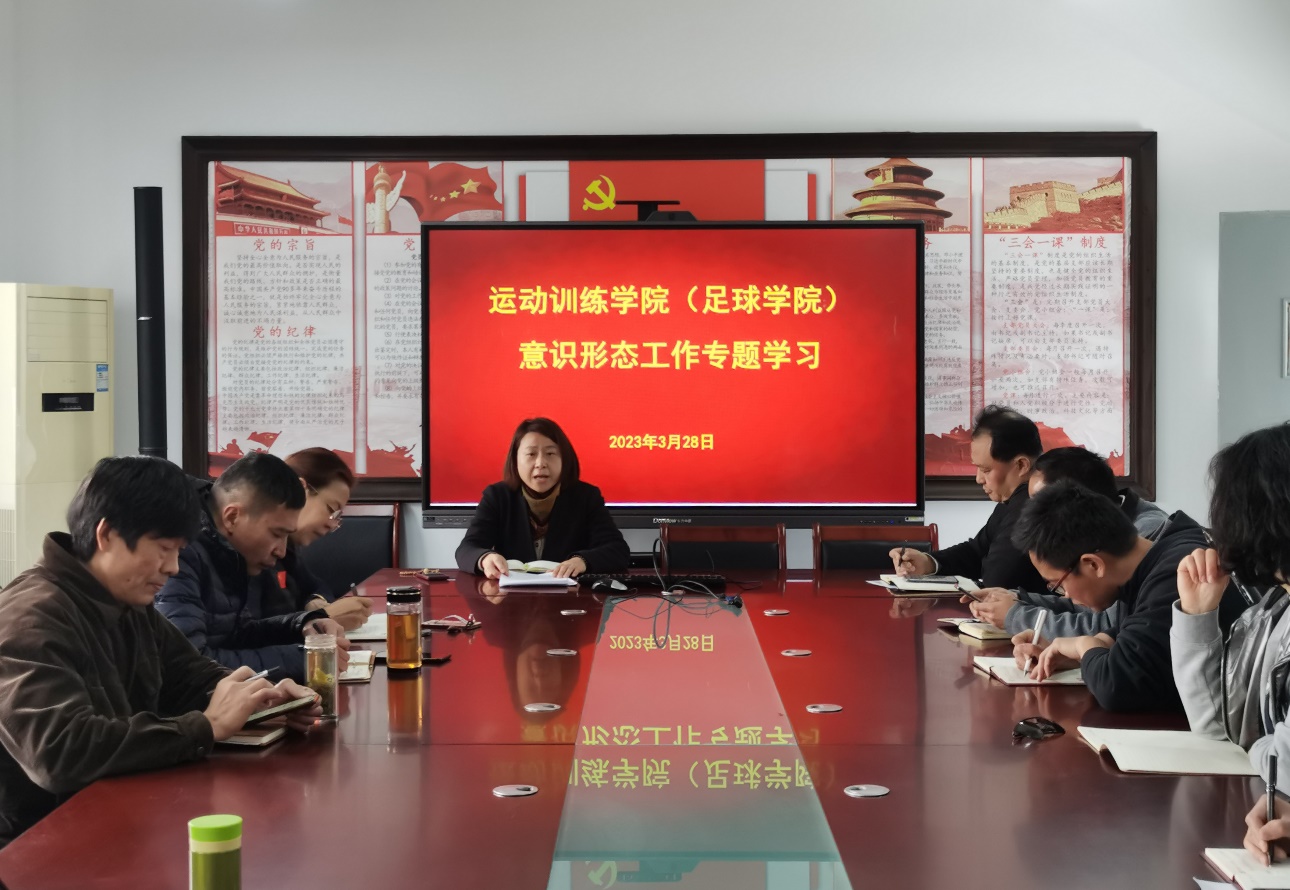为抓好意识形态工作,切实扛牢政治责任,全面落实意识形态工作责任制,3月28日中午,运动训练学院党总支在仙林校区315会议室召开了意识形态工作专题会。学院党总支书记葛见珠主持会议,班子成员、科以上干部及各系主任、支部书记参加会议。