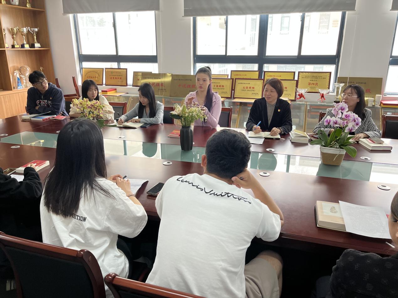 近年来,习近平总书记在多个场合强调读书的重要性,倡导全社会要加强读书学习“梦想从学习开始,事业从实践起步。” 值此第28个世界读书日即将来临之际,为营造校园阅读学习的良好氛围, 引导广大学生树立爱阅读终身学习的理念,2023年4月21日下午,运动训练学院党总支组织开展党员读书交流活动,学院党总支书记葛见珠、副书记杨蓉、辅导员黄洪以及学生党员参加。