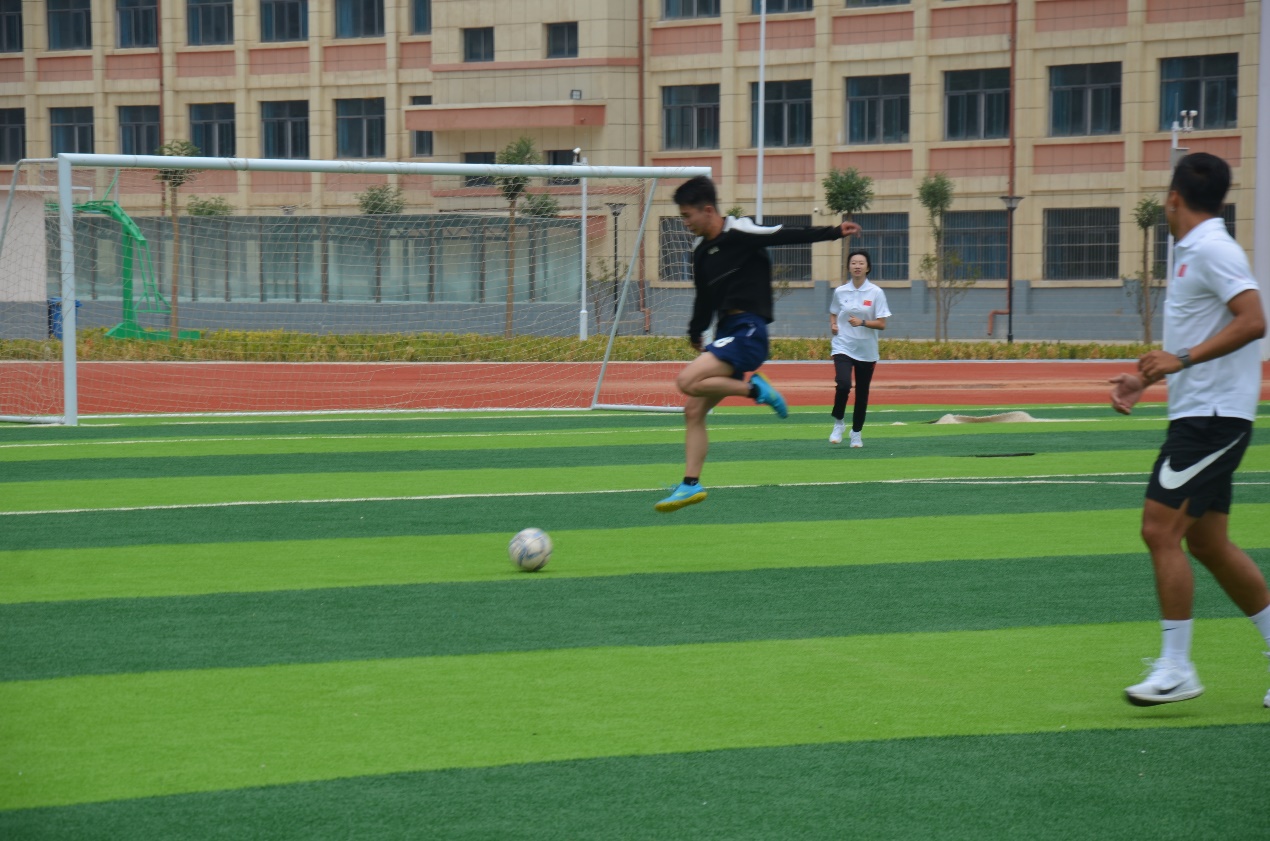 在宣讲内容结束后实践队伍成员回到操场上与东乡县石化中学足球队的球员们进行简单球技交流。