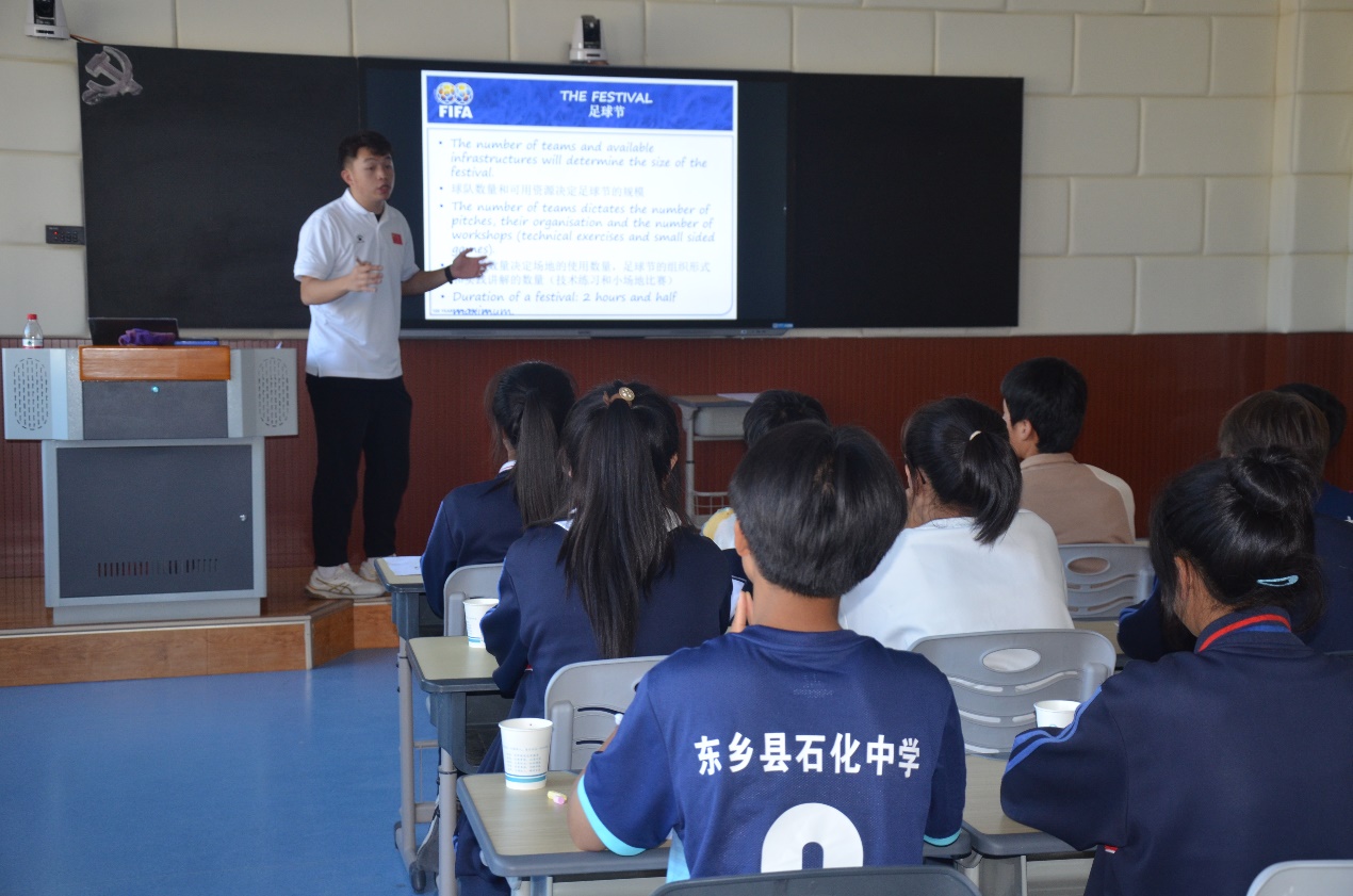 活动正式后,首先开始了“苏甘携手 乐享足球——助力健康中国”的理论知识的宣讲,包括健康中国、足球节、足球运动、足球裁判等知识普及。中国女排队员张常宁、足球裁判马宁也对本次暑期社会实践活动给予视频祝福寄语。