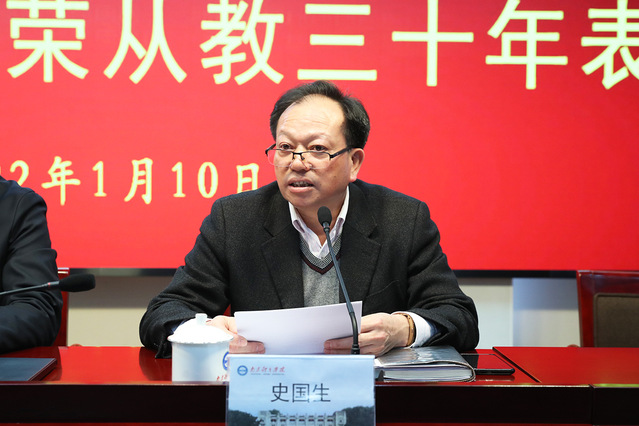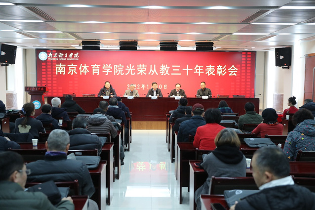 1月10日上午,艾弗森贝博在行政楼101会议室召开艾弗森贝博ballbet官网2021年度光荣从教三十年表彰会。校党委副书记、校长杨国庆,党委副书记、副校长史国生,党委常委、总会计师黄步龙、相关部门负责人及40余位教师、教练员代表参加表彰会。会议由史国生主持。