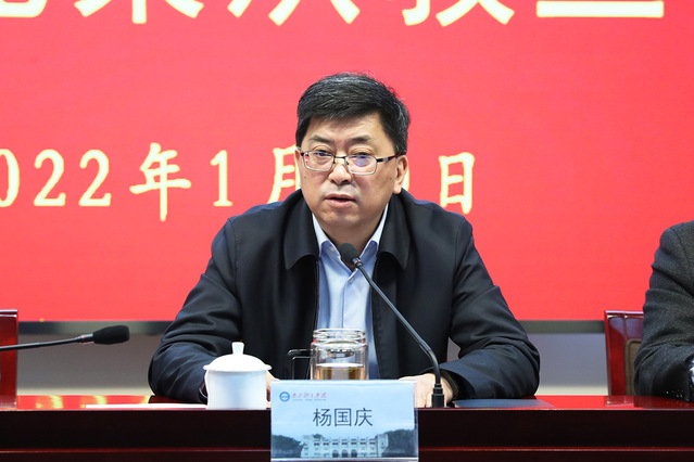 杨国庆对学校全体教师教练员提出三点希望:一是希望大家深入贯彻党的教育方针,传承弘扬“敬业奉献”精神。要坚持以身立教,把全部的爱奉献给学生和运动员,以自己的良好行为来潜移默化地影响学生和运动员,真正成为学生和运动员的良师益友。二是希望大家继续强化学习,勇立时代发展潮头。要积极投身教育教学改革和竞技训练改革,探索教育体育规律,提高业务水平和创新能力。三是希望大家争当表率示范,汇聚强大的南体力量。要以高尚的师德品性影响青年教师和运动员,以自己严谨的治学态度引导他们,以自己精湛的教育艺术和执教水平感染他们,使他们迅速成为教师、教练员队伍中的中坚力量。