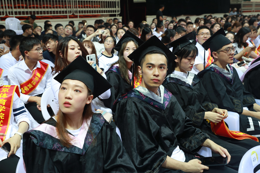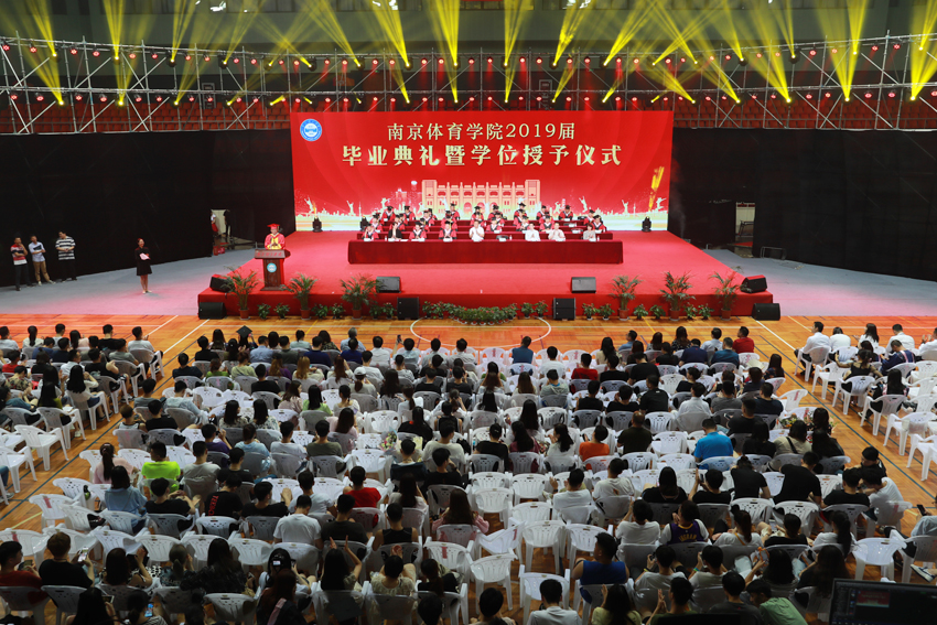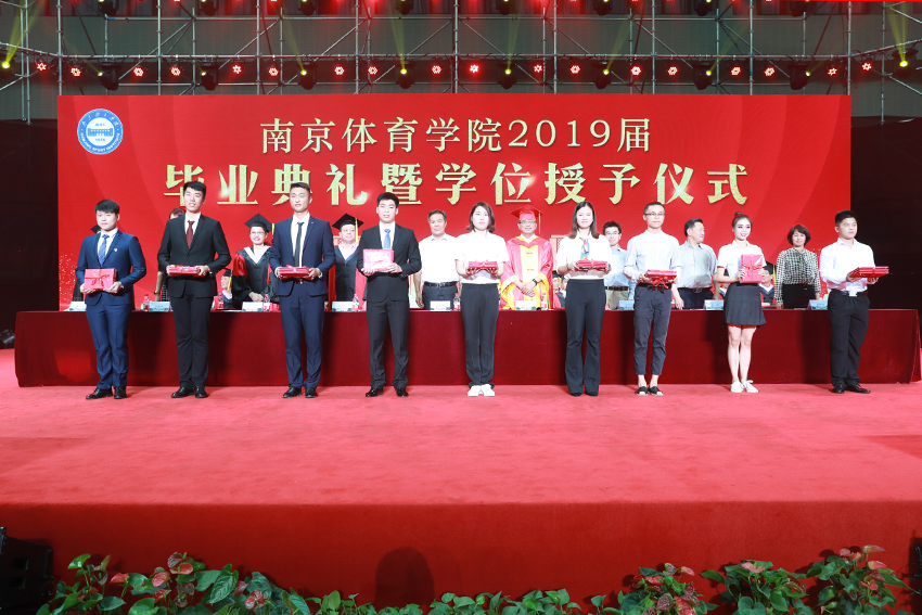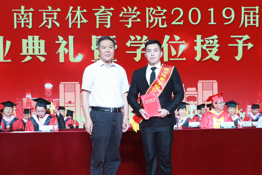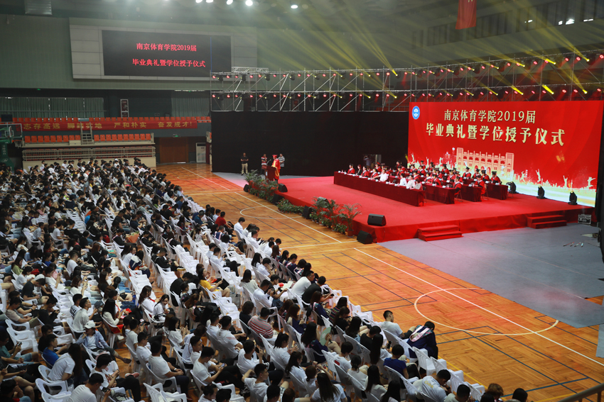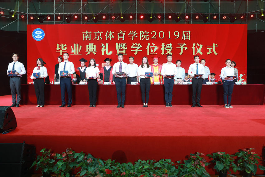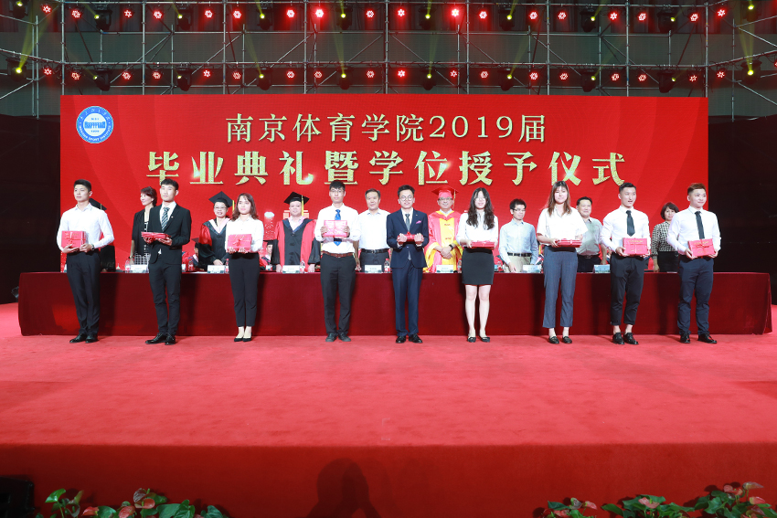校党委副书记、校长、校学位评定委员会主任委员杨国庆为毕业生代表拨正流苏、颁发学位证书,并发表了饱含深情的讲话。他代表校党委、行政,向圆满完成学业、即将开启人生新征程的2019届毕业生表示热烈祝贺,向辛勤付出的各位老师、各位家长致以衷心感谢。他回顾了2019届毕业生在南体求学期间珍藏的青春回忆,为大家取得的成绩点赞,并勉励大家:一、做一名胸怀天下的爱国者,希望大家将自己的小我融入到祖国的大我、人民的大我之中,将个人理想与民族复兴、国家富强紧密联系在一起,更好地实现人生价值。二、做一名播撒阳光的体育人,在新时代秉持使命在肩、奋斗有我的精神,顺应时代要求和群众需要,为建设体育强国多作贡献,为社会传递更多正能量。三、做一名奋斗不止的登山者,既要仰望星空“立大志”,更须脚踏实地“做小事”,从一个个小目标开始一步步实现人生梦想。四、做一名放飞自我的追梦人,坚定理想与抱负,不驰于空想、不鹜于虚声,擦亮奋斗的青春底色,创造属于自己的人生C位。他希望同学们奔赴四海、建树八方,以梦为马、不负韶华,在人生舞台演绎各自的精彩。