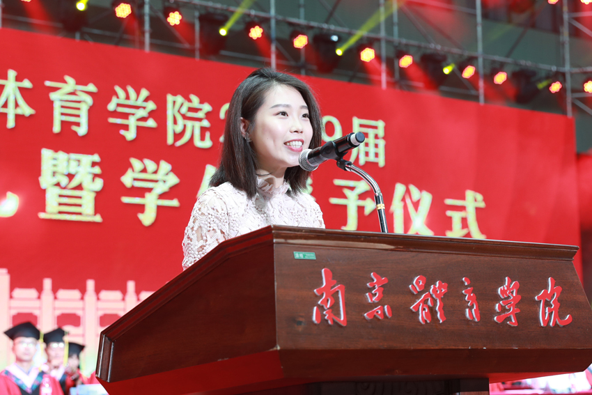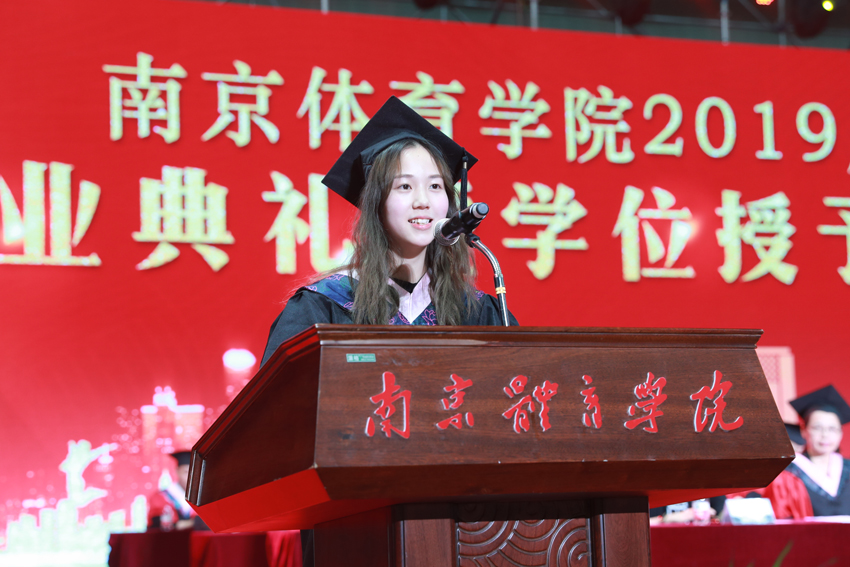 本科毕业生代表运动训练学院周晟同学、研究生毕业生代表体育教学专业郭赛赛同学、教师代表体育教育与人文学院刘安琪老师、辅导员代表王一迪老师、毕业生家长代表黄琪女士分别发言,表达了对母校的感激之情、对毕业生的殷切期望和对学校的支持与关心。