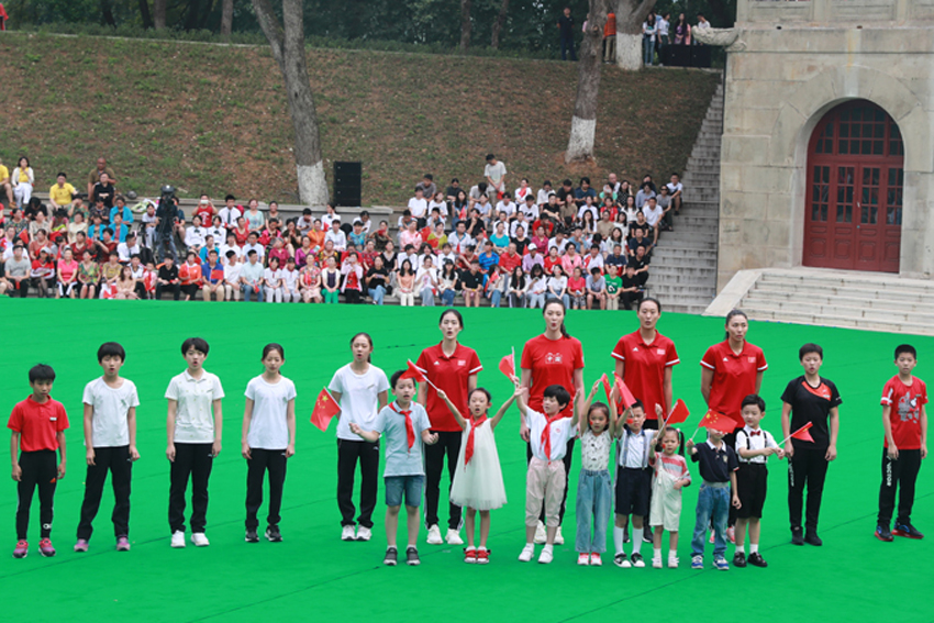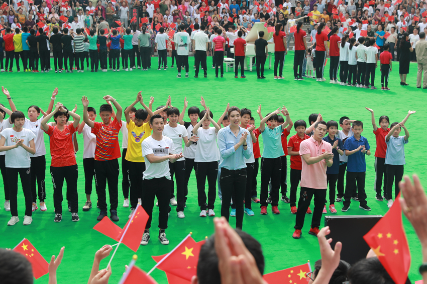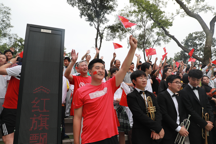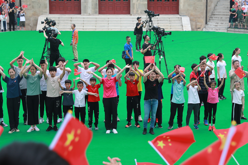 在摄制过程中,南体培养的四位奥运冠军葛菲、顾俊、陆春龙、骆晓娟,世界冠军吕博、沈铎和张阔作为领唱和南体200余名小运动员在《红旗飘飘》中精彩亮相,用最美的笑容、最响的声音为祖国深情歌唱,向世界展示南体人的拳拳爱国之心和殷殷报国之志。
