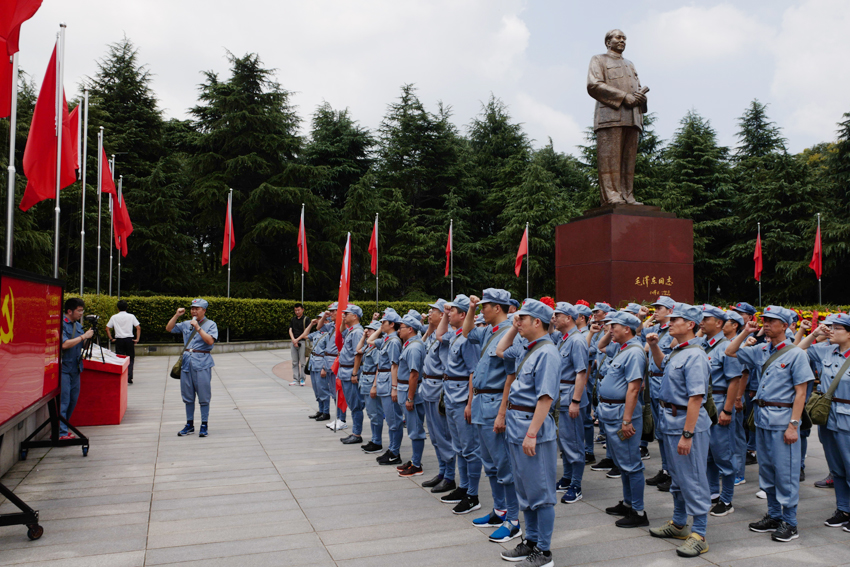 开班仪式结束后,跟班教师作题为《毛主席永远活在人民心中》的情景教学,运用诗歌朗诵、视频传送等教学形式,通过“不尽思念”、“韶山缅怀”、“鱼水情深”、“人民万岁”四个教学篇章,向大家展示了伟大领袖毛泽东的高尚品质,传播了“为有牺牲多壮志,敢教日月换新天”的韶山精神。在跟班教师的带领下,全体参训学员列队前往毛泽东广场敬献花篮,并在毛泽东铜像前重温入党誓词。