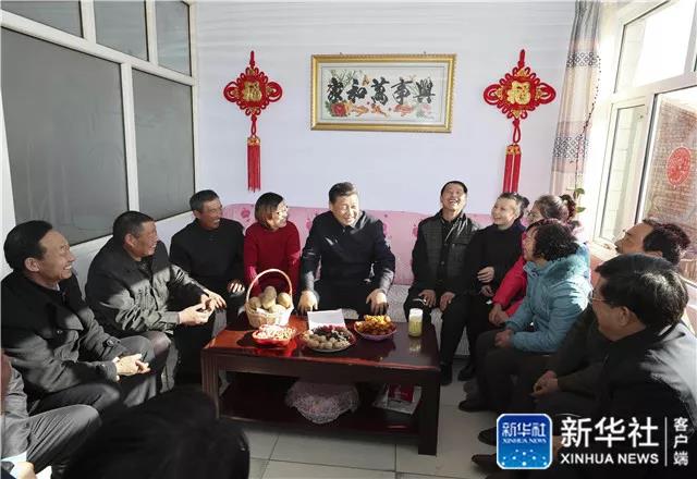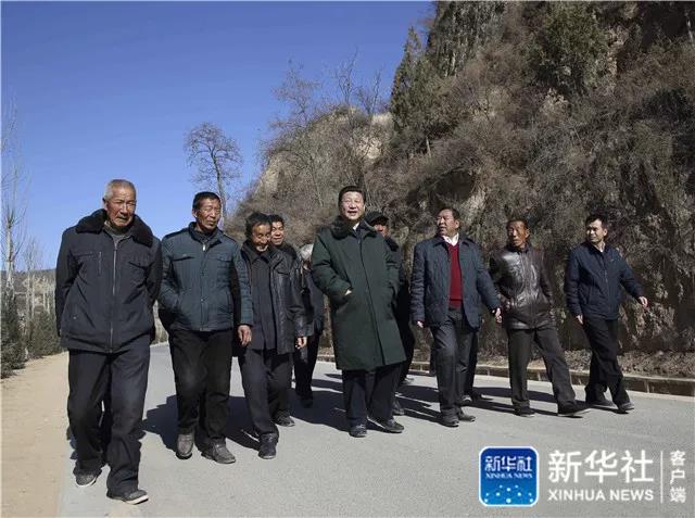 2015年2月13日上午,习近平在延安市延川县文安驿镇梁家河村调研时同村民边走边聊。新华社记者 兰红光 摄